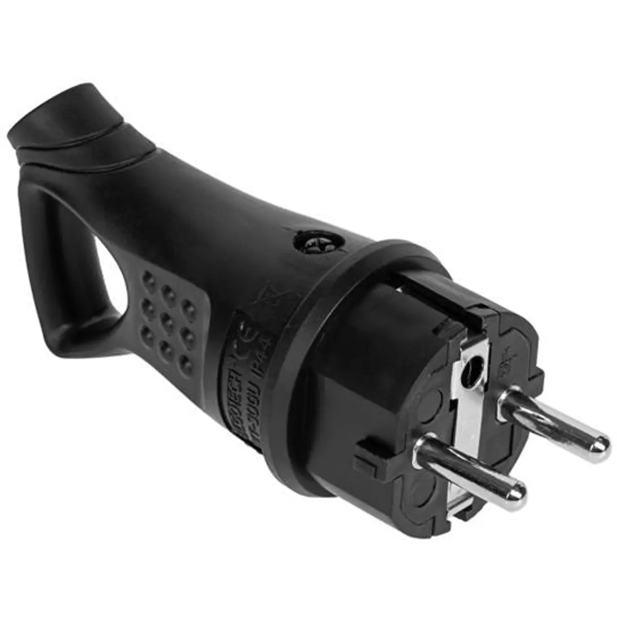 Ficha schuko macho 250VAC 16A em borracha preta com puxador - IP44