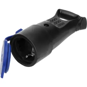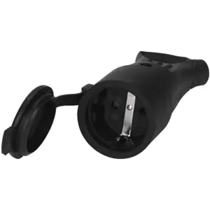 Ficha schuko fêmea 250VAC 16A em borracha preta com tampa e puxador - IP44