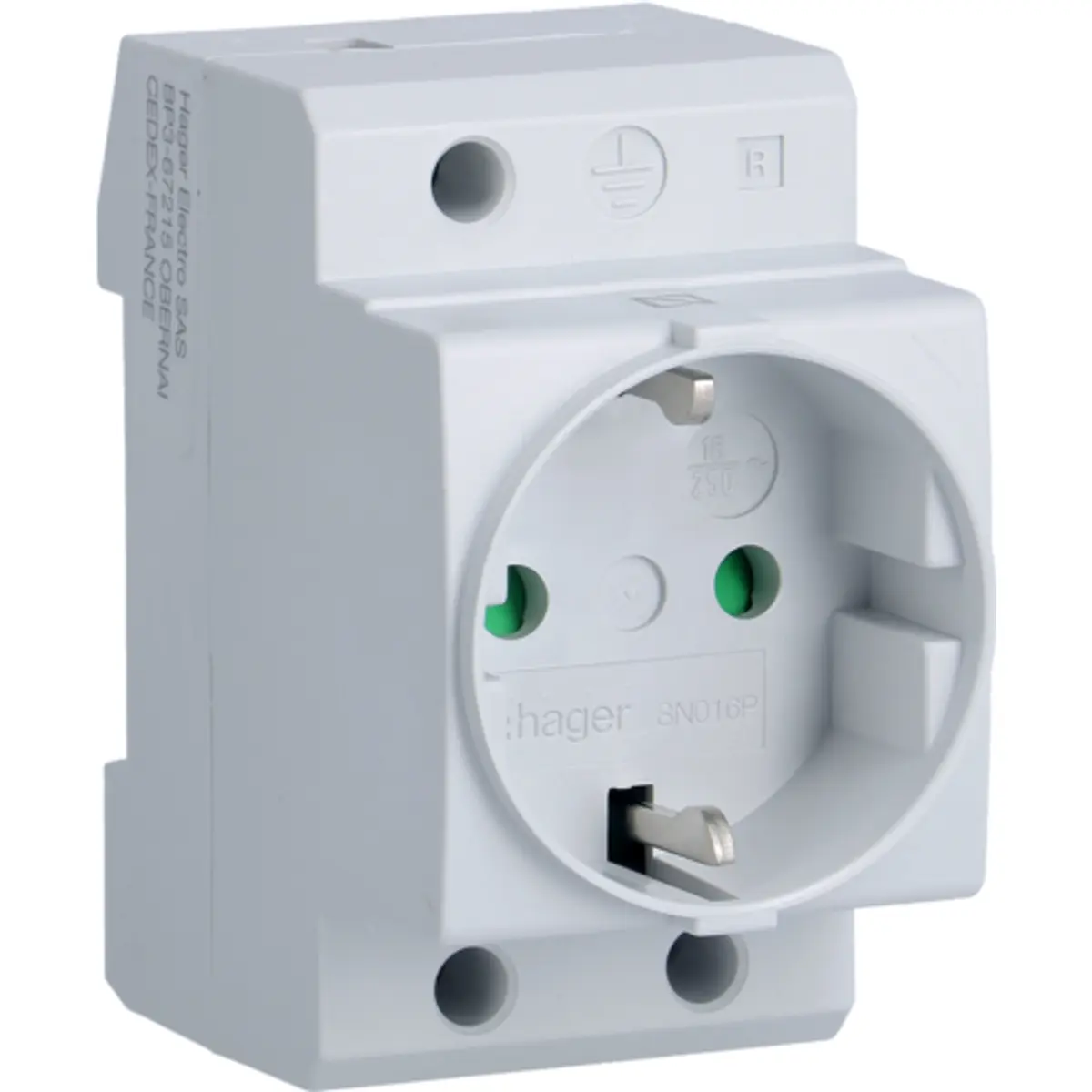 Hager SN016P - Tomada schuko 230VAC 16A para calha DIN