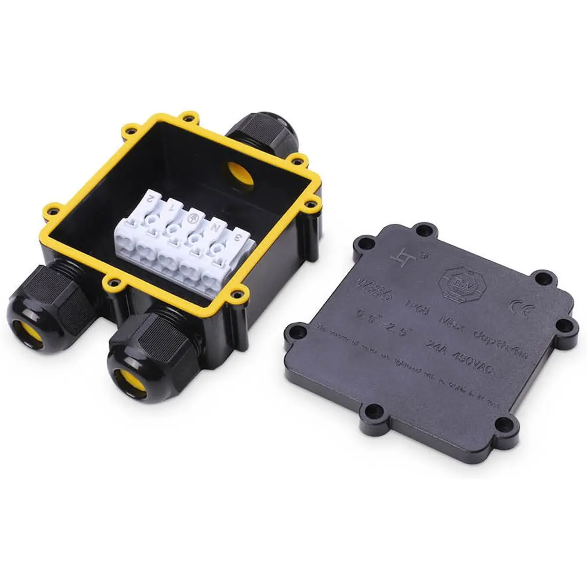 Caixa de derivação estanque em Y (3 saídas) c/ bucins 135x105x37mm IP68 - preto
