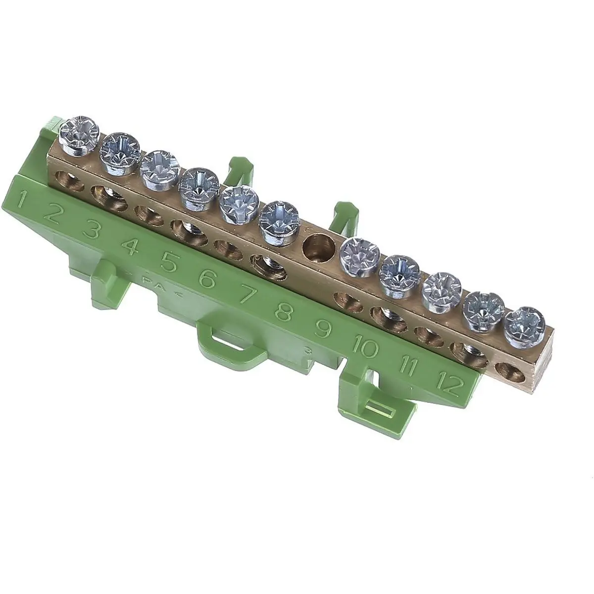 Barramento de 11 ligações com base, para ligação de Terra (verde/amarelo)