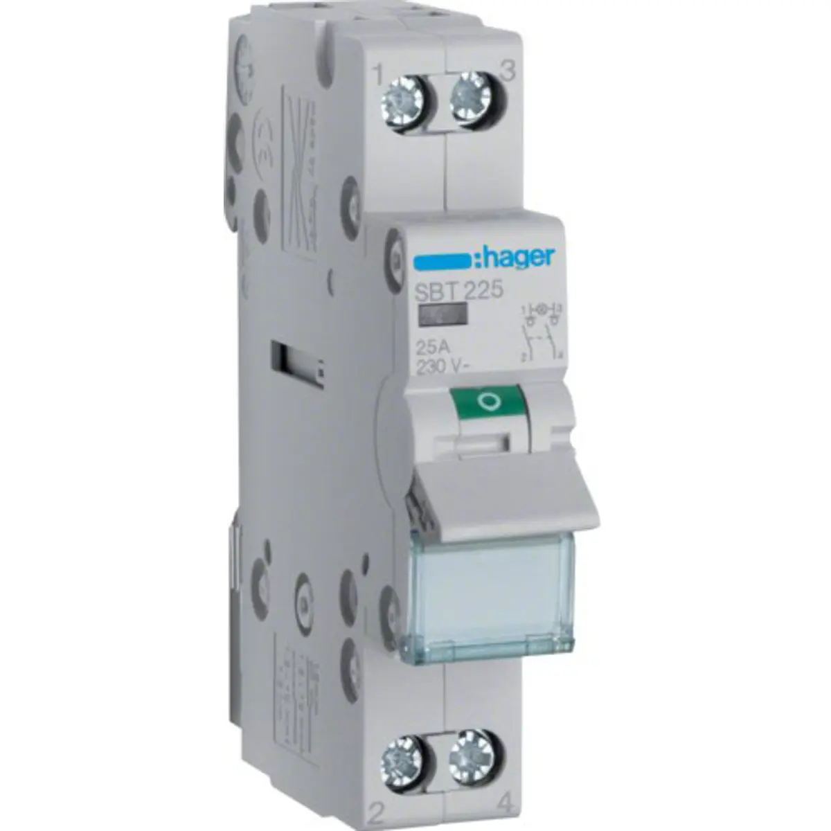 Interruptor de corte bipolar 25A, com indicador luminoso laranja.