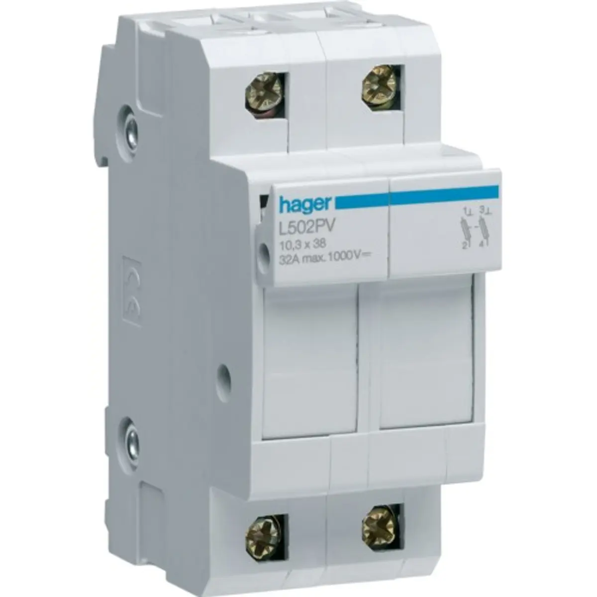 Hager L502PV - Corta-Circuitos Porta Fusíveis 2P 1500V DC 32A máx. (s/ fusíveis)