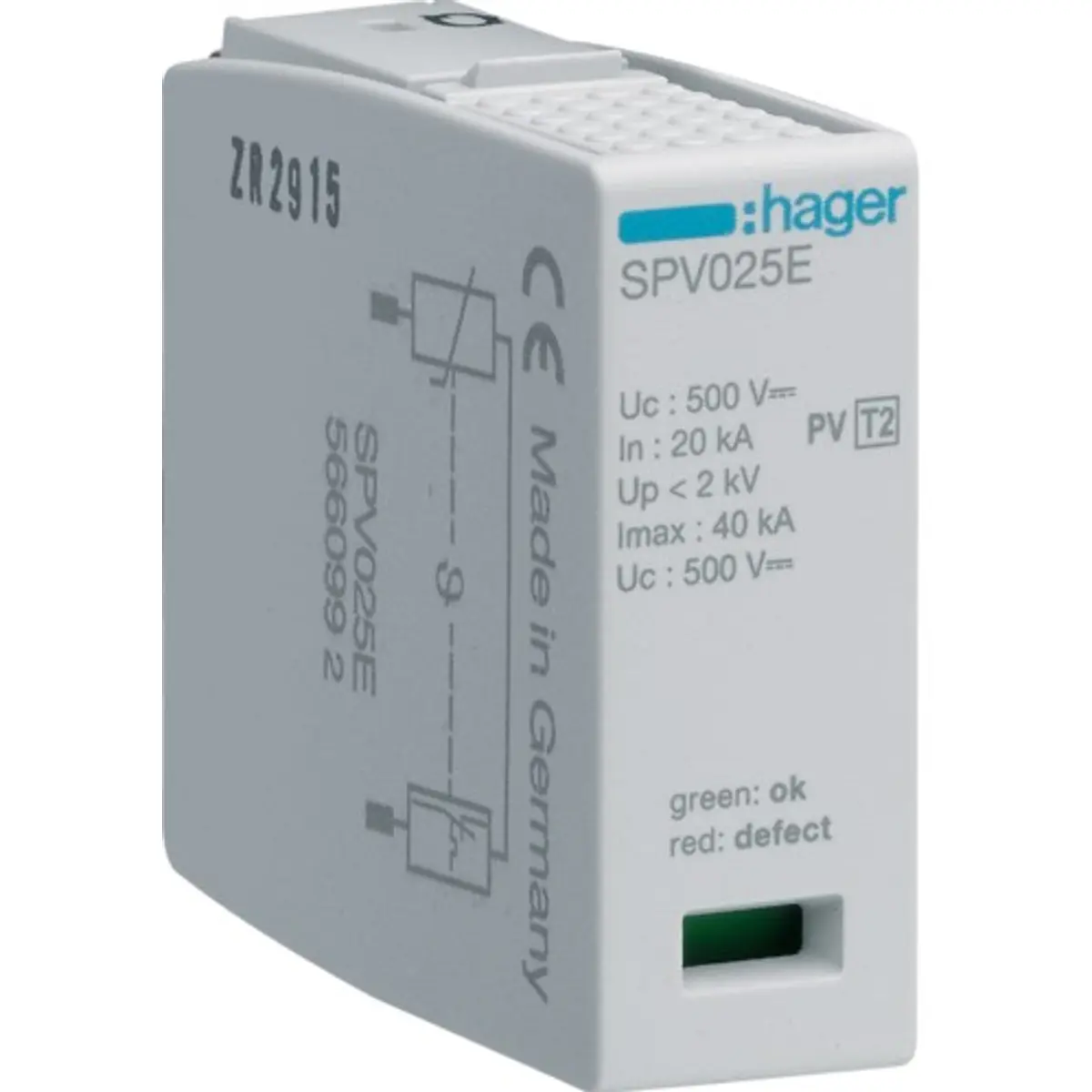 Cartucho de substituição de proteção de Terra para limitadores de sobretensão Tipo 2 para aplicações fotovoltaicas 1000V DC (SPV325).