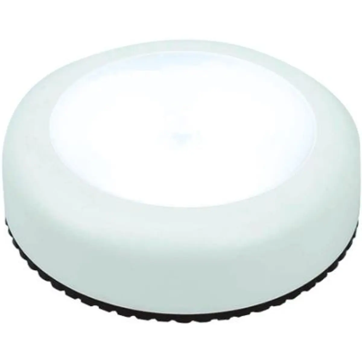 Luz de armário com sensor de movimento para uso interior, com temperatura de cor de 4000 K, 35 lúmens e potência de 0,5 W. Detecção de movimento até 3,5 m com ângulo de 100°. O tempo de iluminação é de 30 segundos após detecção. Alimentação é 3xAAA (não incluídas). Material em PC, dimensões Ø72x22mm. Instalação simples com fita 3M.
