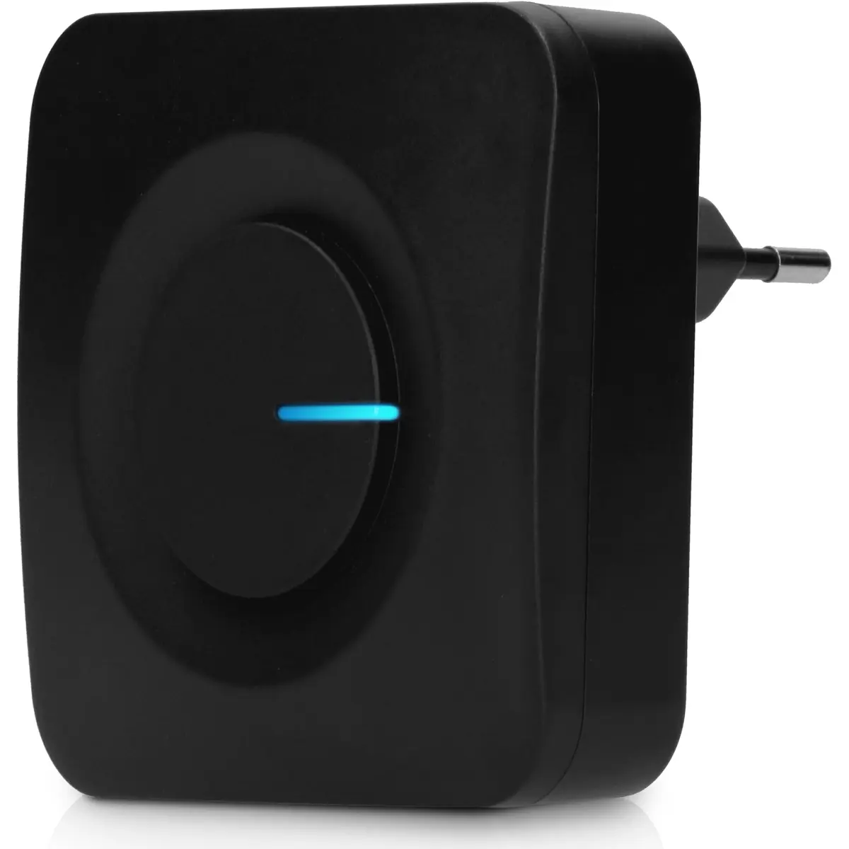 ● Ao contrário do botão, a campainha tem de ser alimentada. Pode ligá-la diretamente em qualquer tomada.