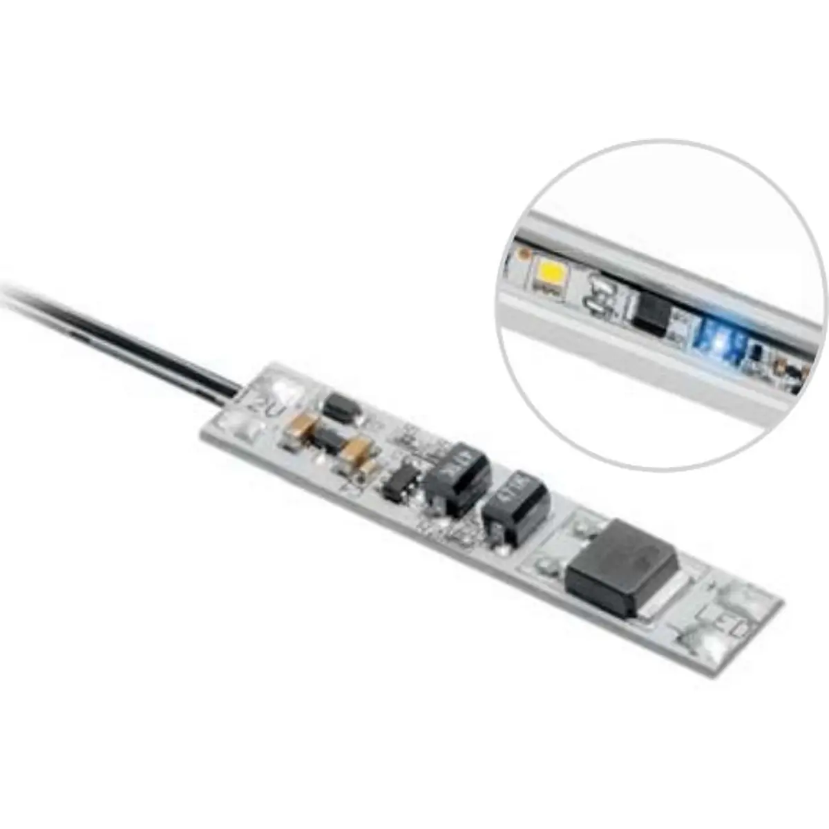 Interruptor sem contato para montagem dentro do perfil. Perfeito para fitas de LED nos armários da cozinha.