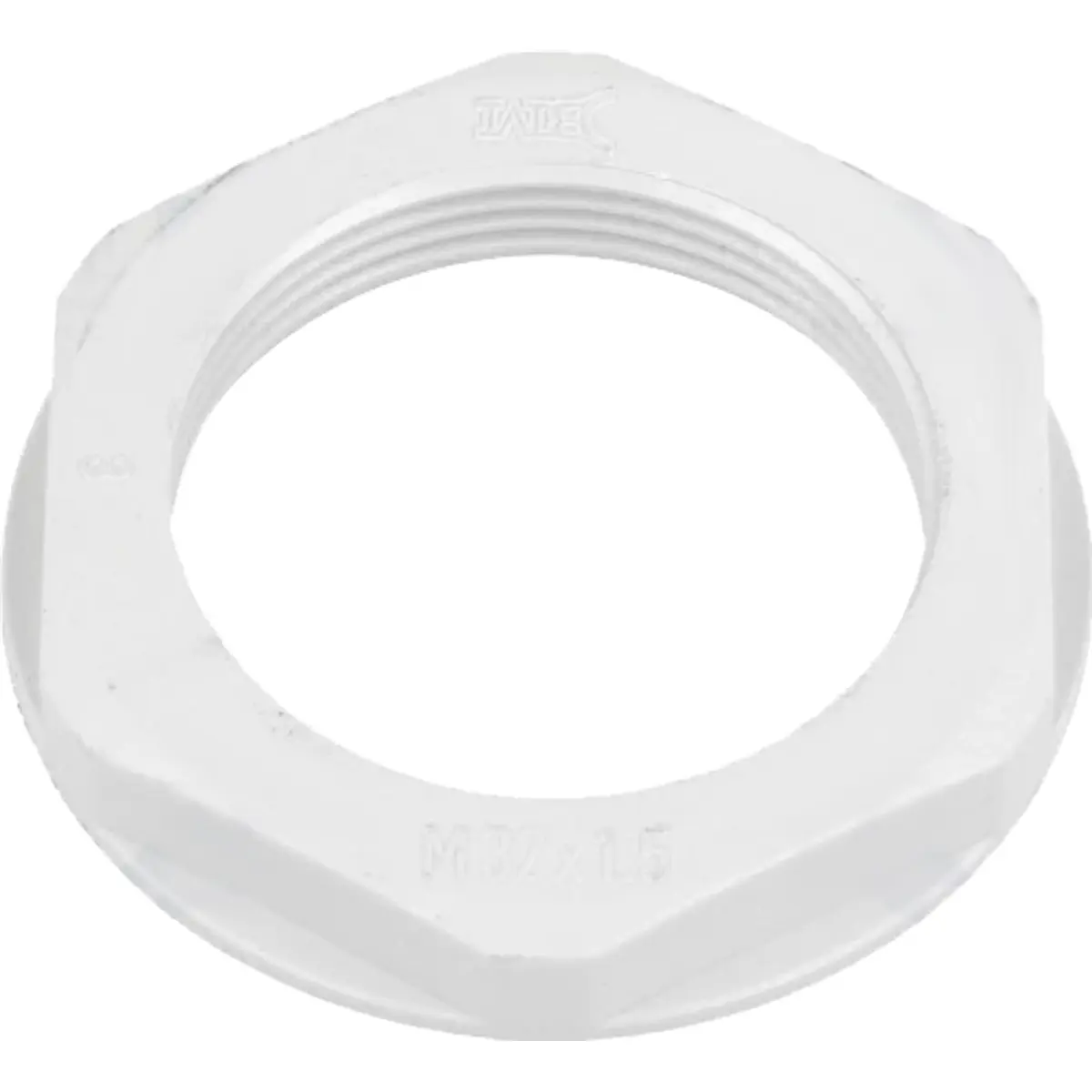 Porca de fixação em poliamida cinzenta para cabos, compatível com rosca M32 e passo de 1,5 mm. Oferece montagem simples com chave de 41 mm, proporcionando fiabilidade, resistência e proteção em ligações de cabos. Ideal para sistemas que exigem componentes plásticos duráveis, pouco peso e compatibilidade com roscas M32.