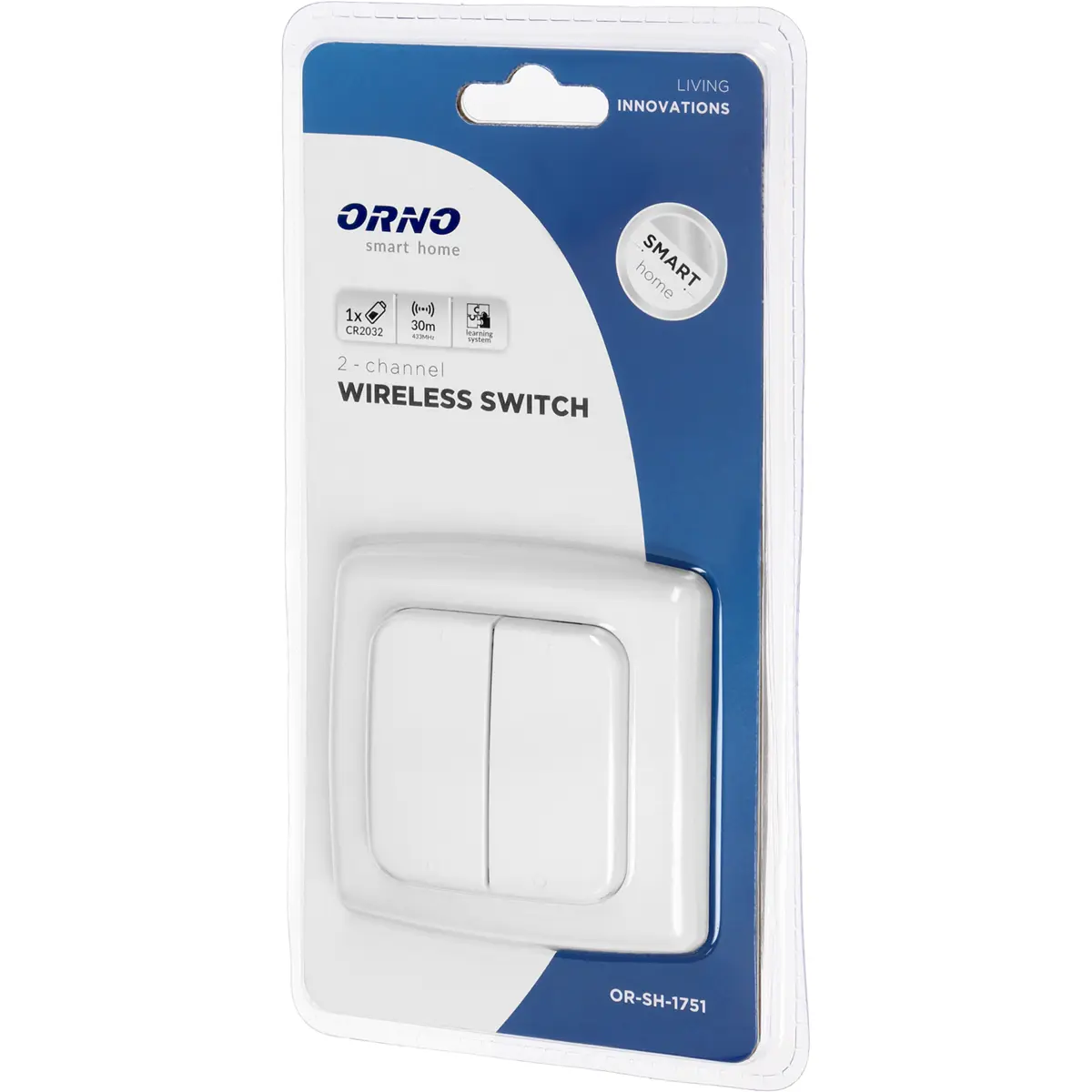 O dispositivo foi projetado para controlar remotamente controladores de relé embutidos sem fio, tomadas e toda a parte elétrica conectada. O dispositivo possui dois transmissores de rádio integrado e opera na frequência de 433,92 MHz. É adequado para montagem direta na parede sem a necessidade de colocá-lo dentro de caixas de junção elétricas. Pode ser usado como uma unidade de controle remoto de canal único. O dispositivo é compatível com ORNO Smart Home baseado no mecanismo TUYA, que suporta soluções de casa inteligente Google e Alexa.