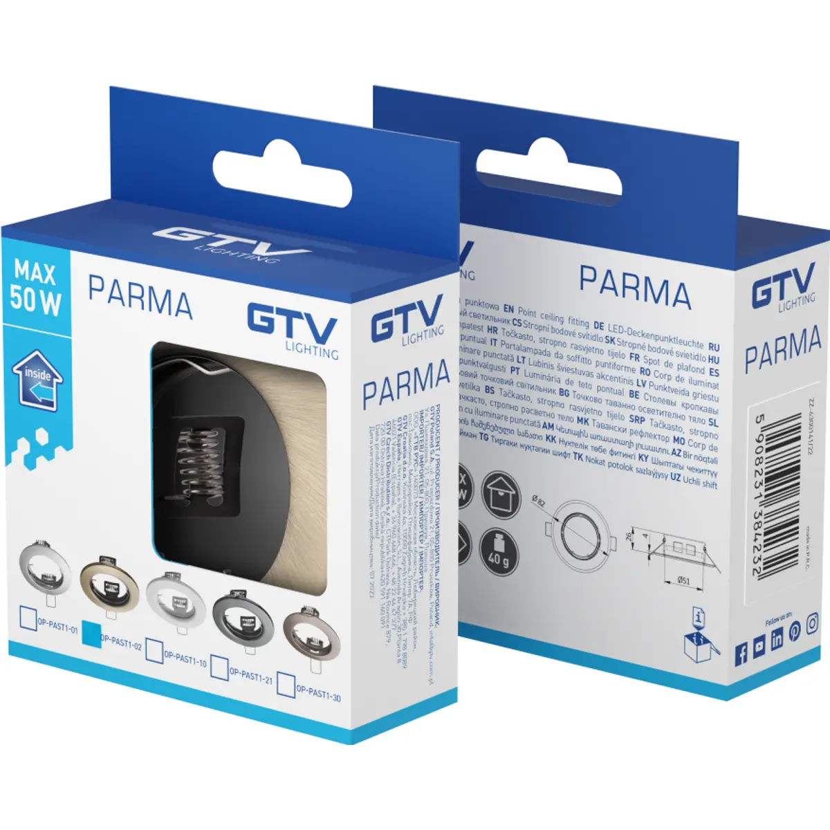 GTV Lighting - Aro redondo fixo com mola para lâmpadas GU10/MR16 Ø82mm (Ø51mm) - Inox