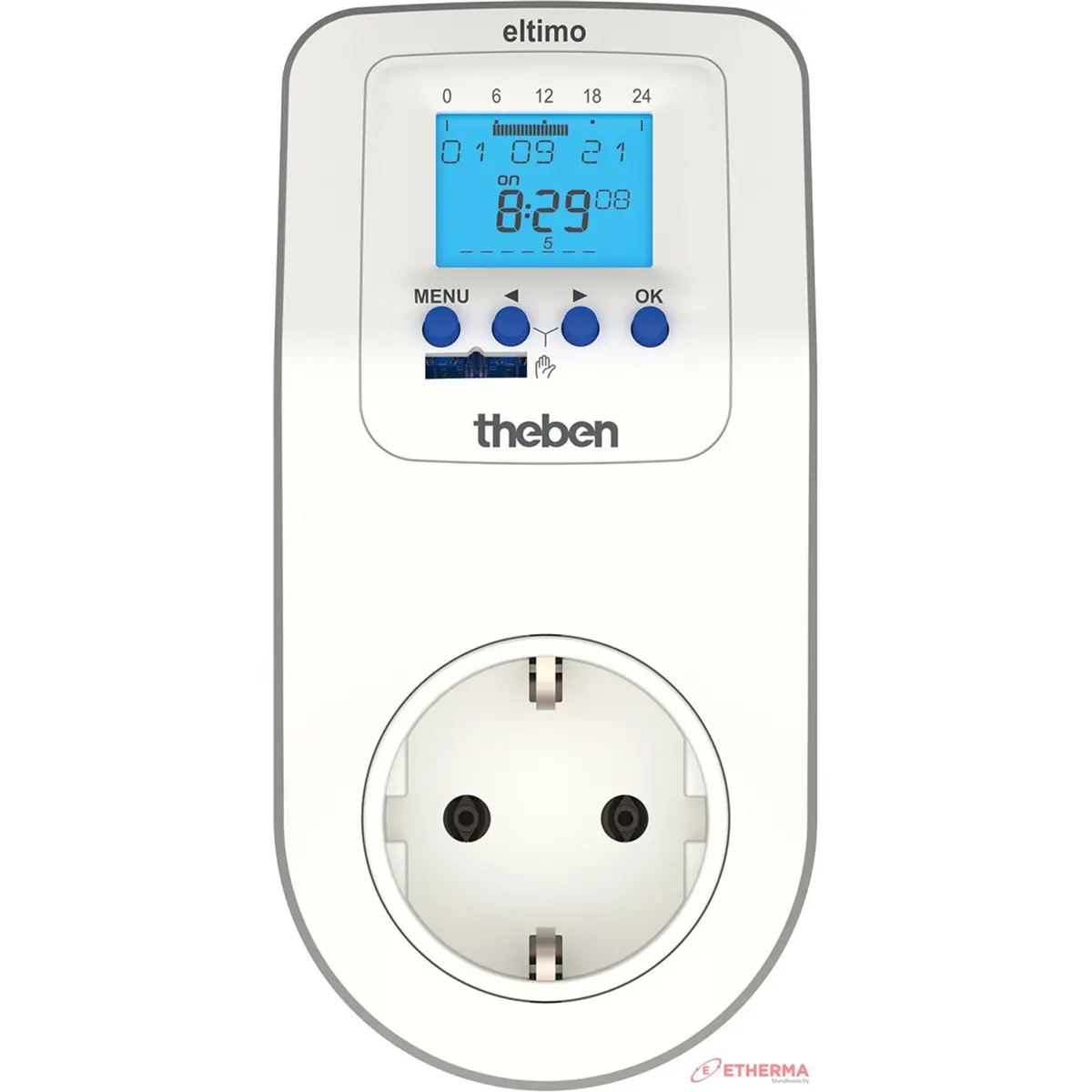 Temporizador de tomada digital com programa semanal, programação de aplicativo possível via Bluetooth através do acessório opcional OBELISK top3. Permite a segurança máxima contra manipulação, os programas do temporizador só podem ser transferidos do aplicativo para o temporizador de tomada se o Bluetooth OBELISK top3 estiver conectado ao relógio.