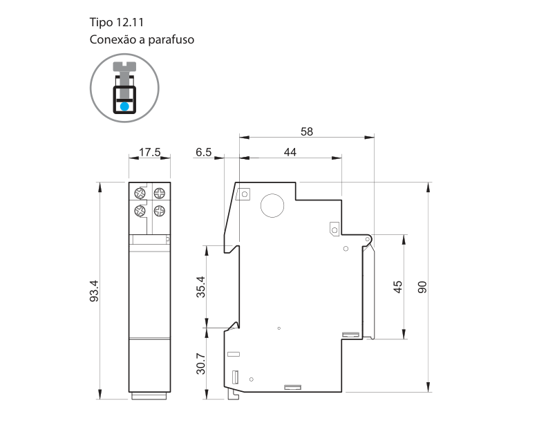 - Montagem: Calha DIN 35 mm (EN 60715)