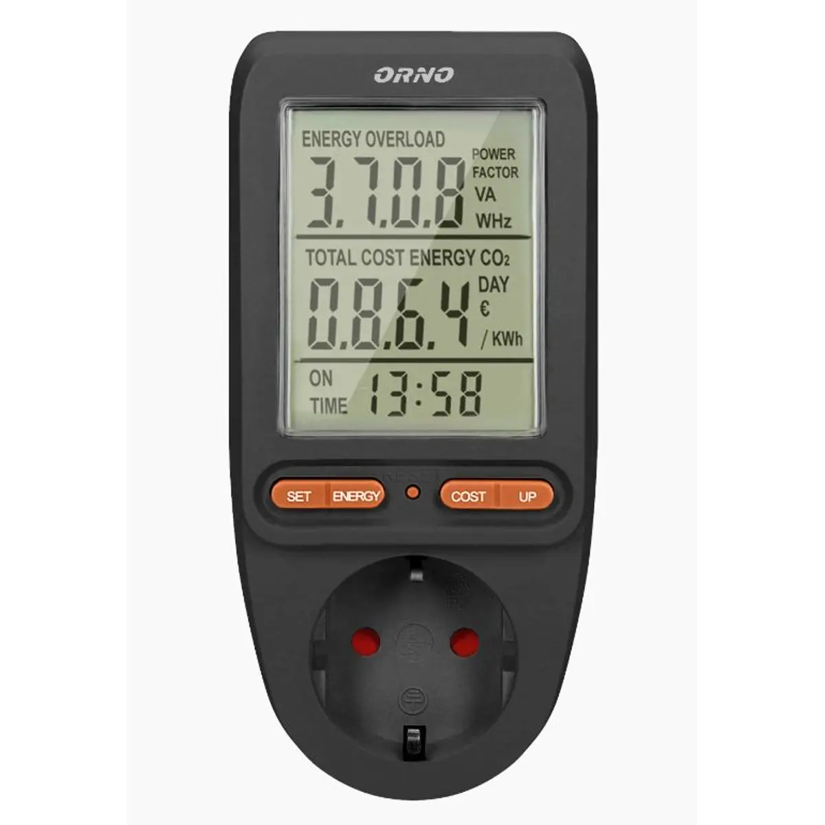 Orno OR-WAT-435(GS)/B - Medidor de consumo de energia com display LCD 230VAC 16A - preto