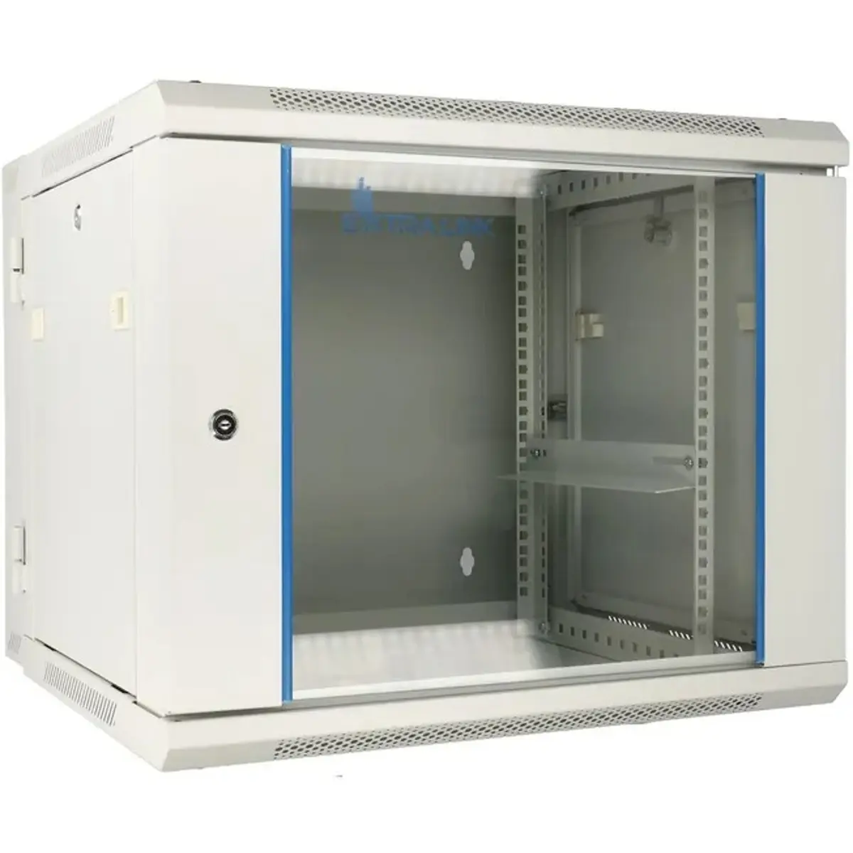 O armário de Rack Extralink foi concebido para montagem na parede em escritórios, salas de servidores de rede ou salas de controlo CCTV. As paredes do armário são feitas de chapa de aço laminada a frio, enquanto as portas frontais são feitas de vidro temperado, com possibilidade de abertura para o lado esquerdo ou direito.