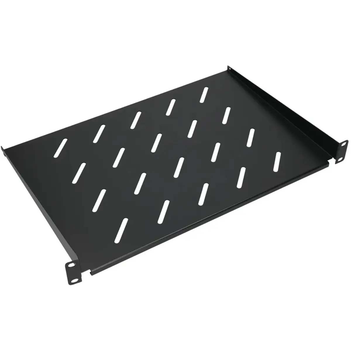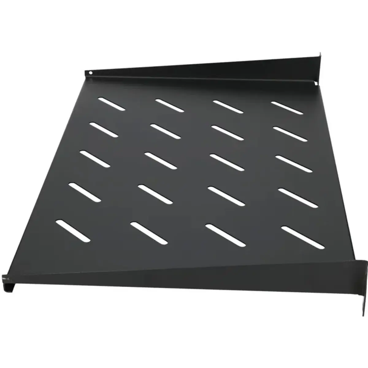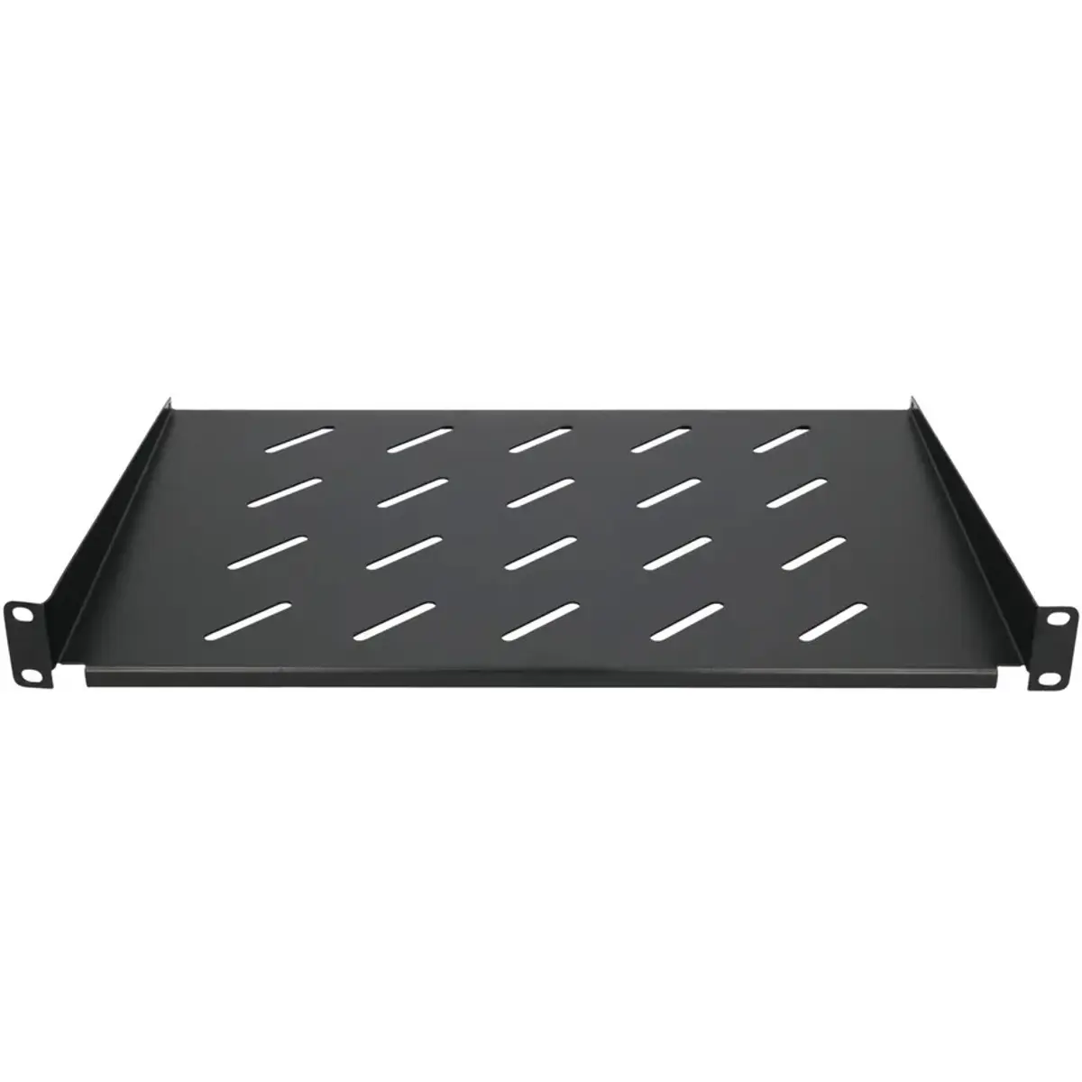 Prateleira fixa para armários bastidores de 19 polegadas, com capacidade de 1U e profundidade de 300 mm. Fabricada em chapa de aço preta, destina-se a montagem em racks de 19 polegadas, com fixação em quatro pontos. Ideal para suportar dispositivos que não estão preparados para montagem direta em armários, oferecendo estabilidade e organização num ambiente de rede e data center.