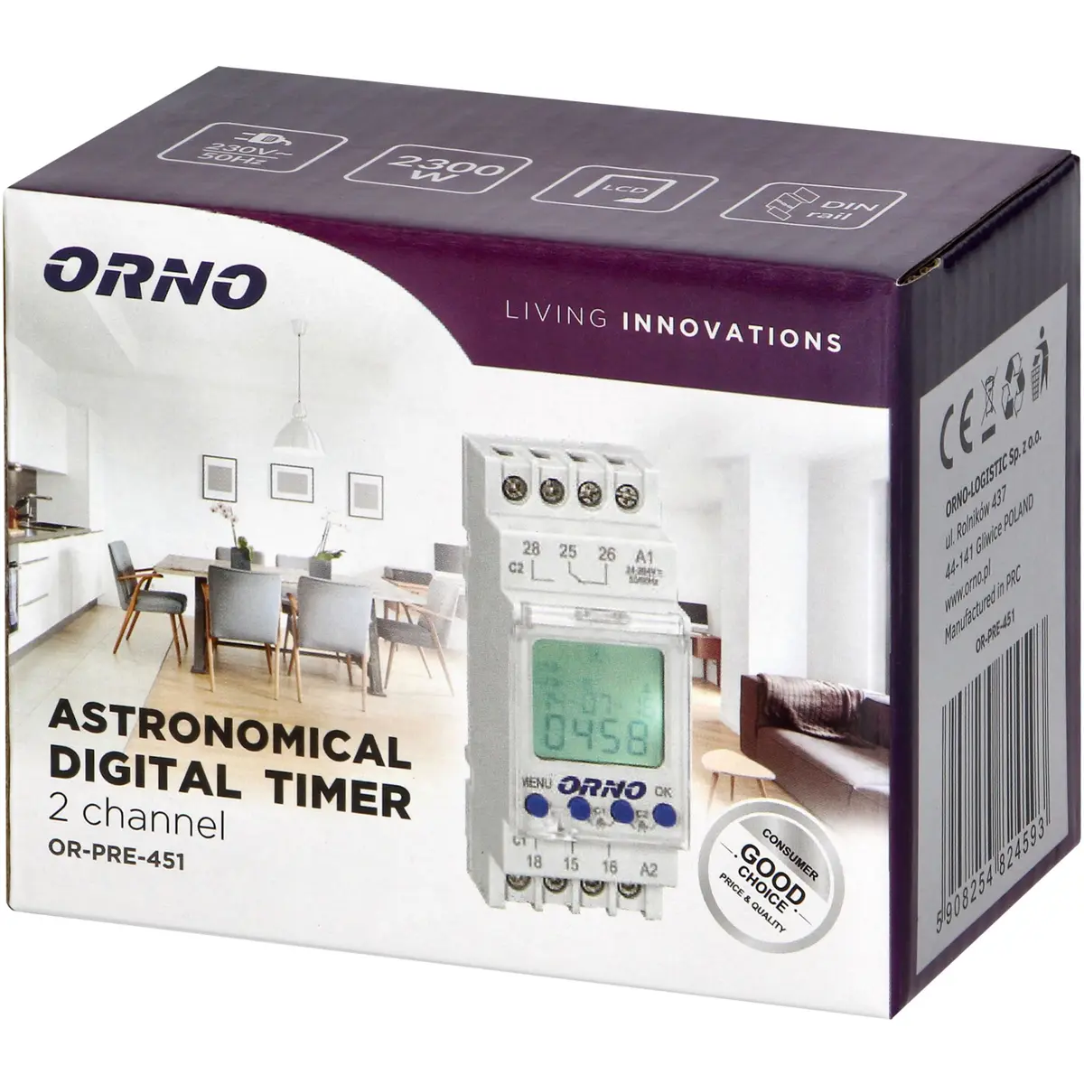 Orno OR-PRE-451 - Relógio temporizador astronómico 100 programas - 2 canais