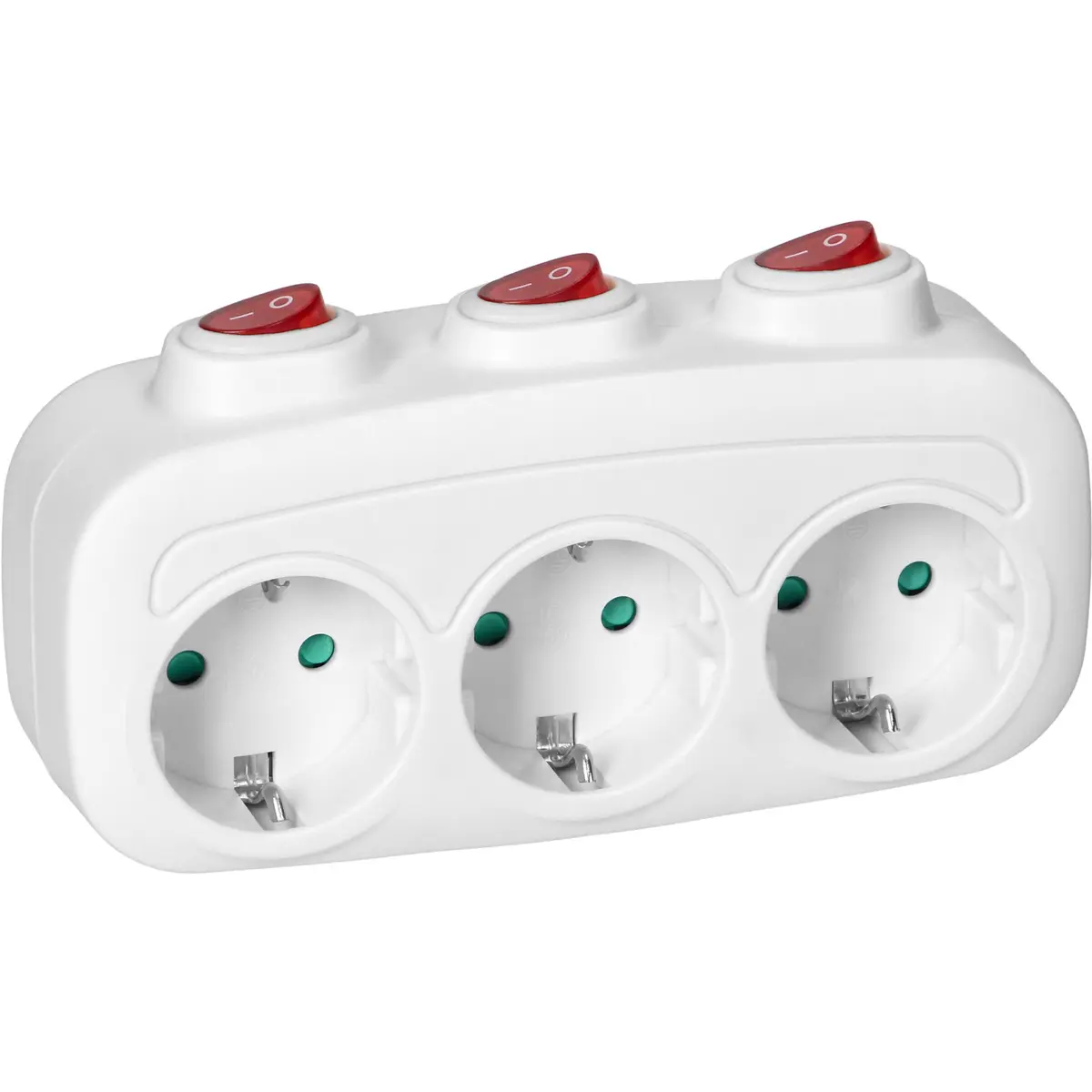Ficha schuko tripla 230VAC 16A 3680W c/ interruptores individuais
