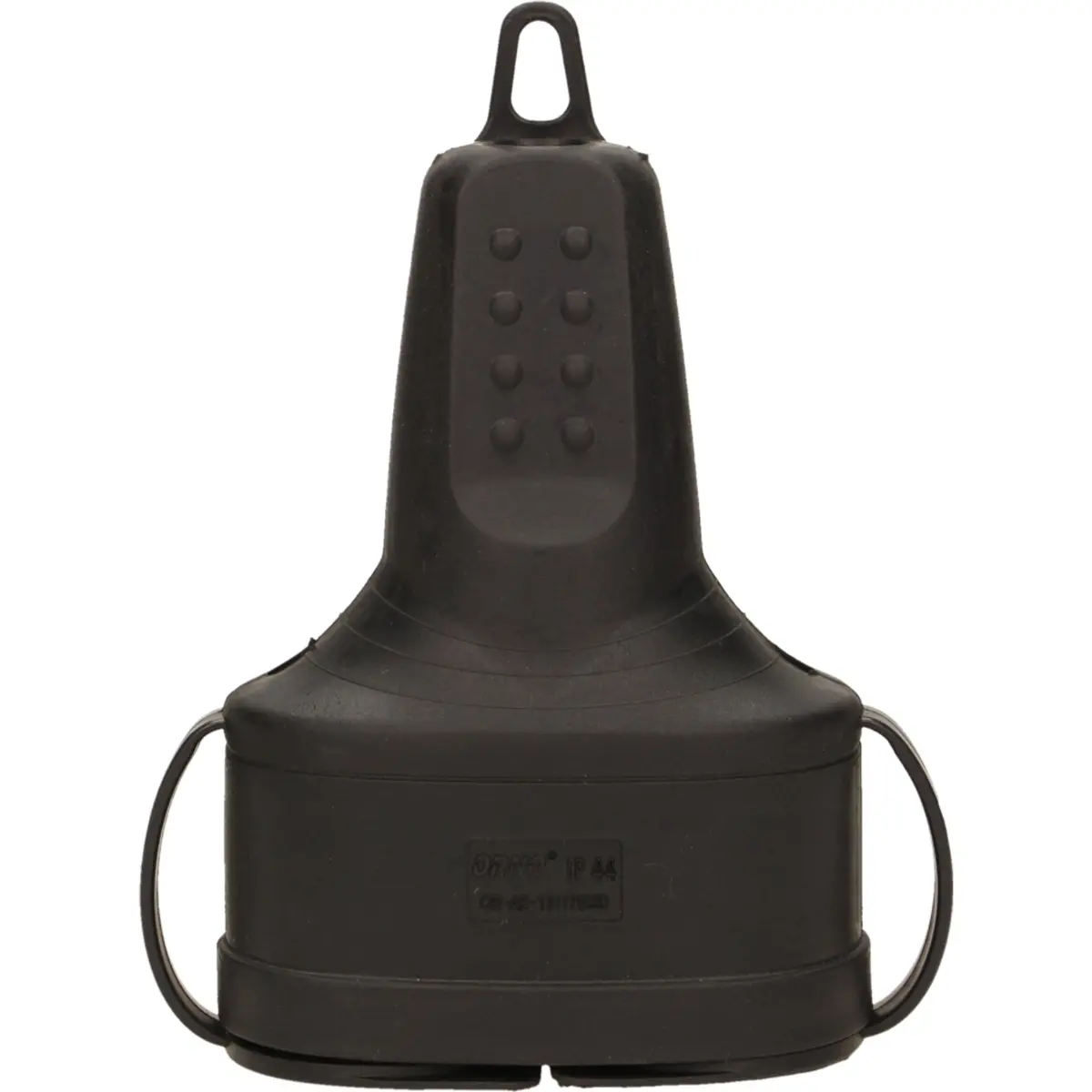 Ficha dupla schuko fêmea 250VAC 16A borracha preta c/ tampa IP44