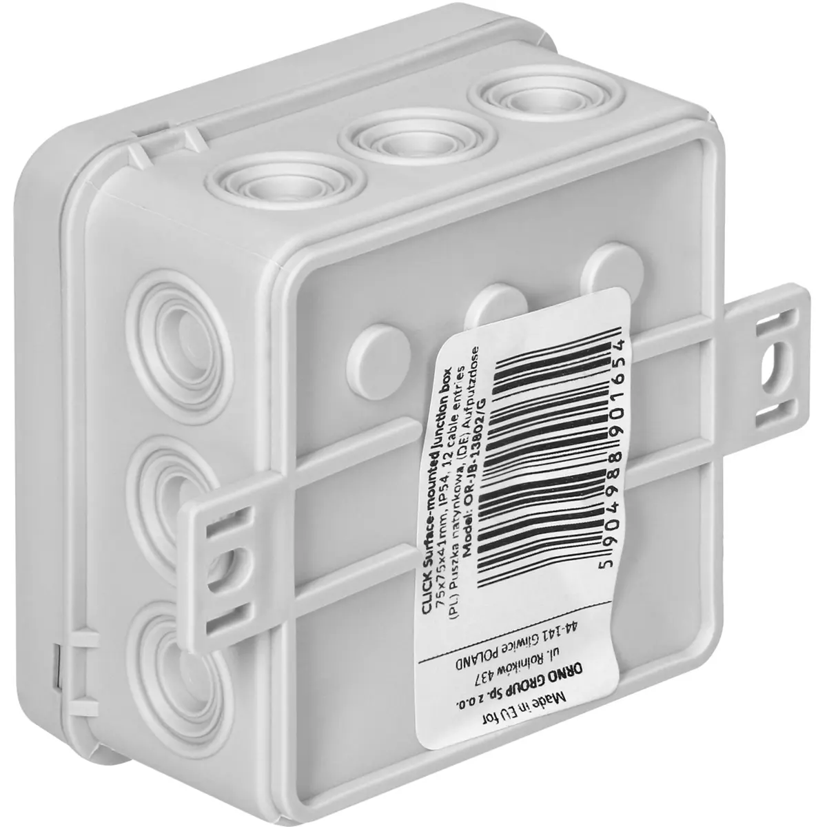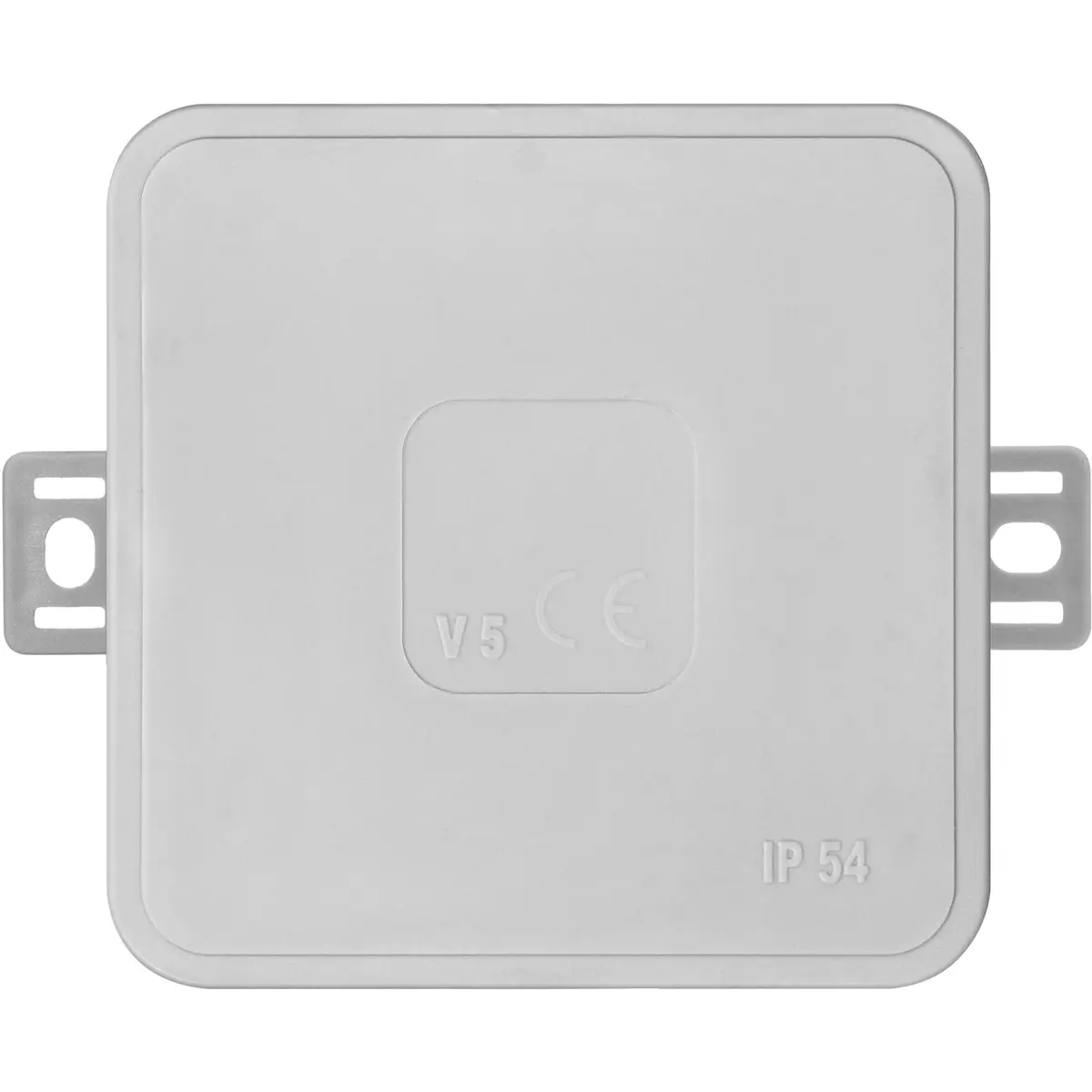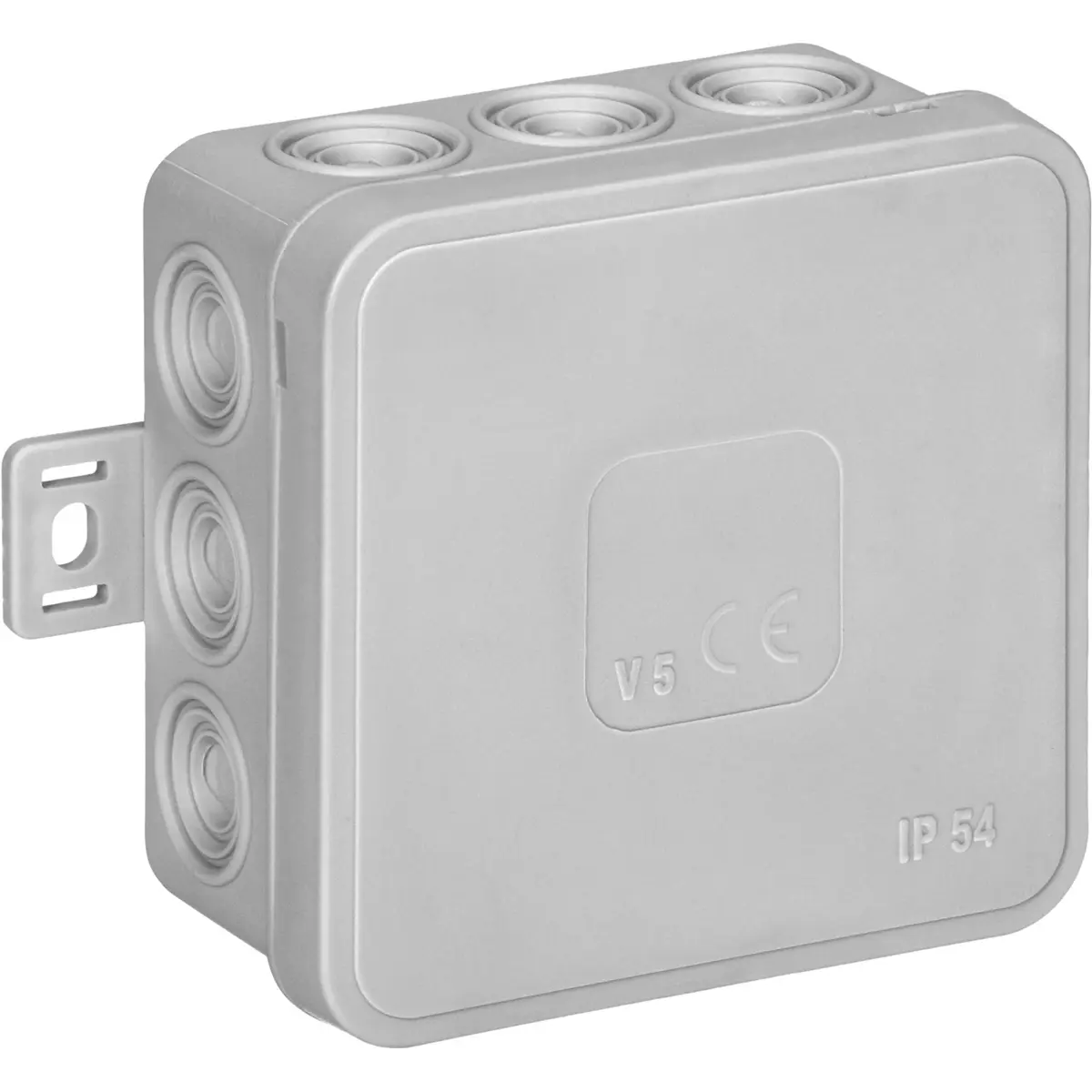 Caixa de derivação estanque com grau de proteção IP54, destinada a passagens de cabos em ambientes húmidos ou expostos. Possui tampa com fecho de pressão, 12 entradas de cabo e uma entrada eliminatória para facilitar a gestão de ligações sem comprometer a estanqueidade. Dimensões de 75 x 75 x 41 mm, cor cinzenta, ideal para proteção de ligações elétricas, caixas de derivação exteriores e montagem segura.