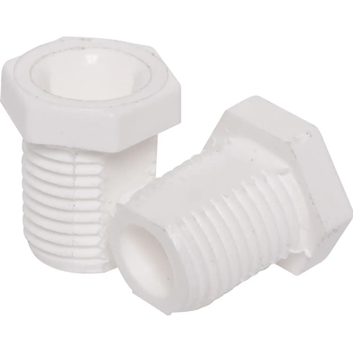 Tubo passa-cabos c/cabeça hexagonal e rosca M10x1 de 12mm antirrotação, resina termoplástica branca.