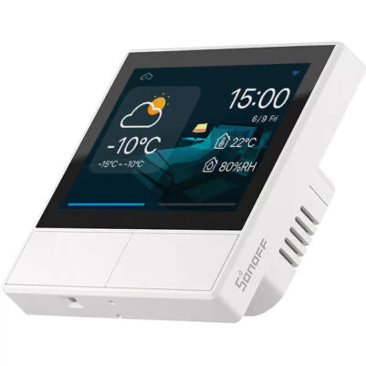 NSPanel Smart Scene Wall Switch está equipado com um poderoso termostato embutido e sensores ambientais. Pode definir diferentes temperaturas internas para diferentes períodos de tempo, e o NSPanel acionará automaticamente o equipamento de aquecimento ou arrefecimento de acordo com suas condições de configuração para manter a sala a uma temperatura confortável. Além do mais, o NSPanel tem uma função de controle baseada em cenário, pode definir diferentes modos para acordar, trabalhar, entretenimento e dormir, e pode alternar entre os modos a qualquer momento.