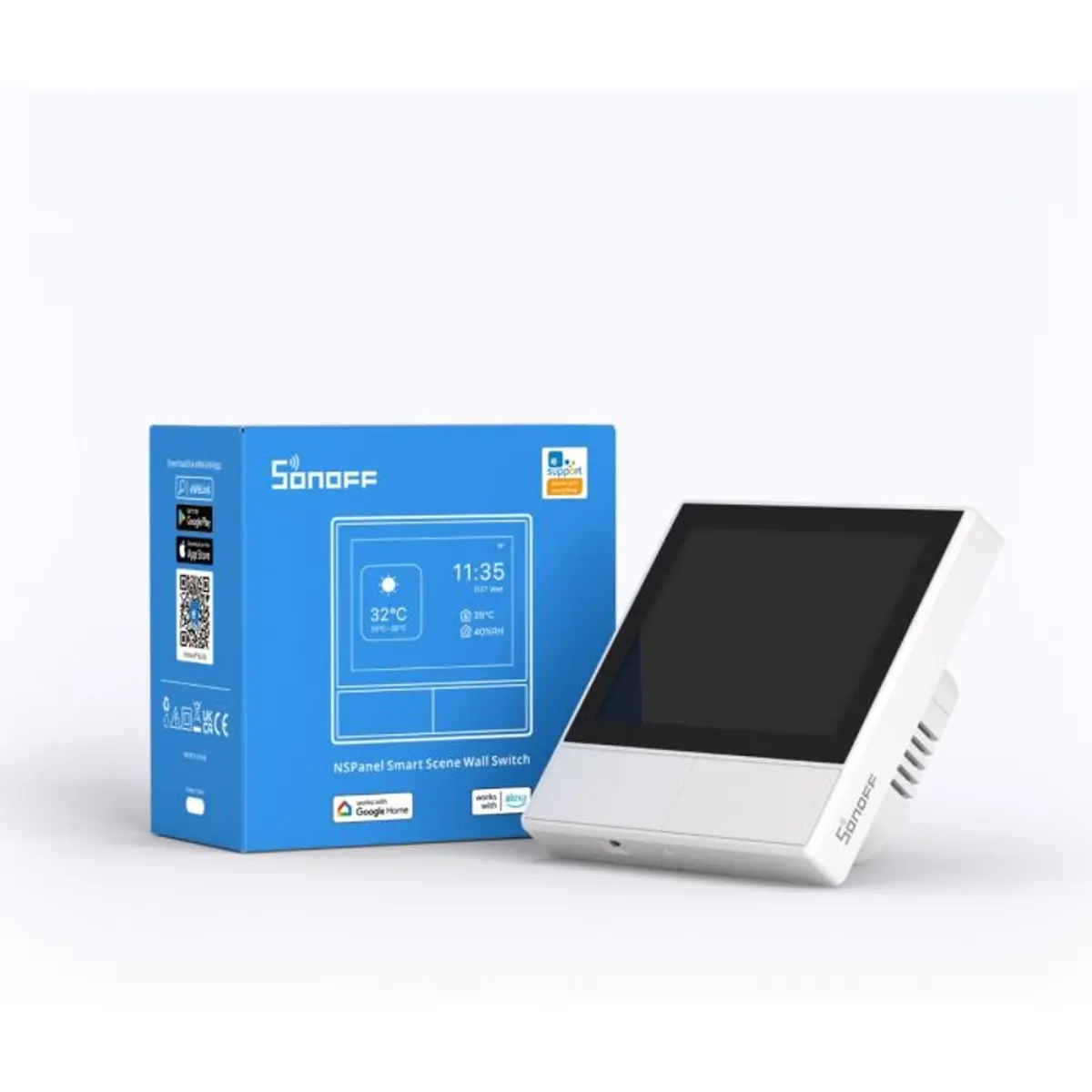 Um painel tão poderoso, como controlá-lo? Existem três maneiras de controlar o SONOFF NSPanel Smart Scene Wall Switch: use os interruptores de canal duplo ou a tela sensível ao toque a uma distância próxima, use o APP para controlar quando estiver a uma longa distância, ou controle de voz se estiver com as mãos ocupadas.