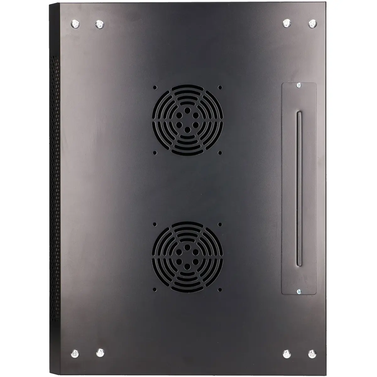 ● No tecto do armário há 2 lugares para instalar ventoinhas (para melhor arrefecimento dos dispositivos) e 2 passagens adicionais para passar cabos.