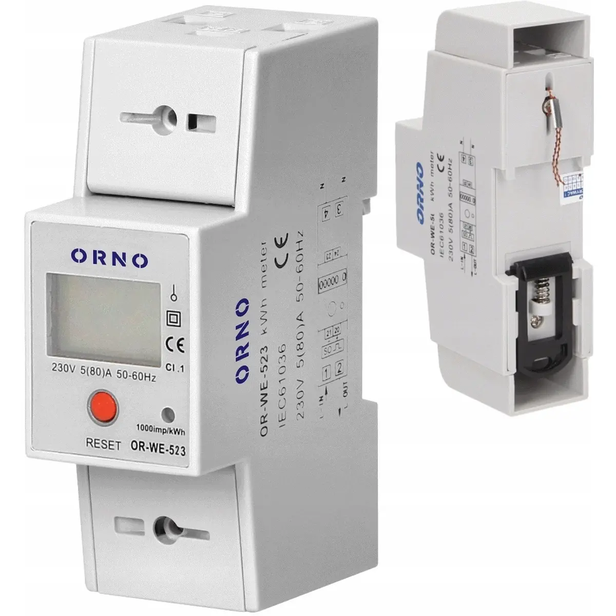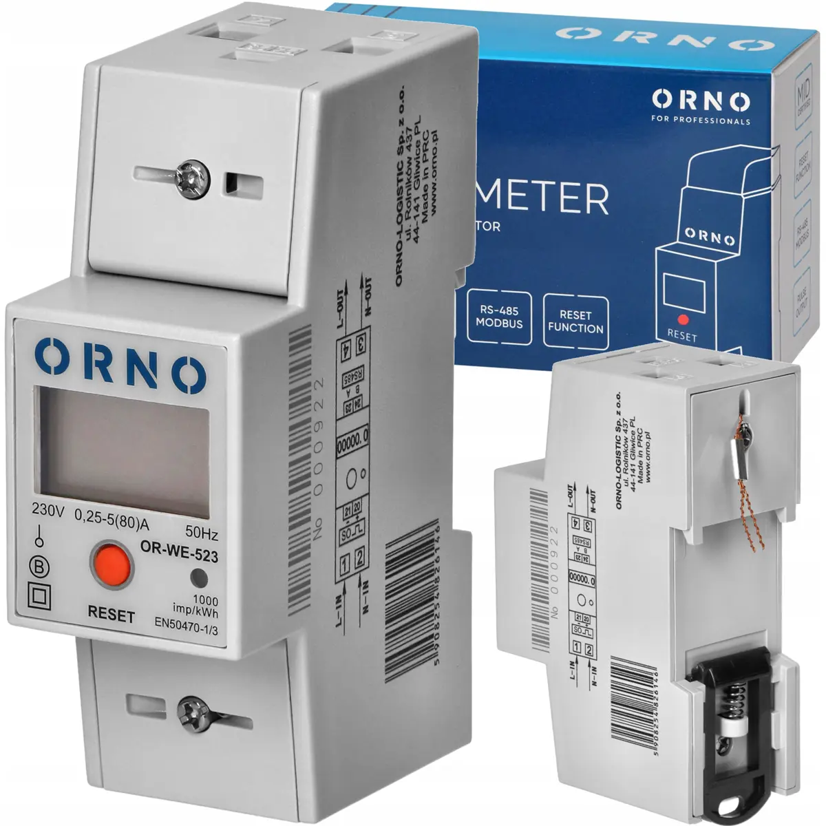 Orno OR-WE-523 - Medidor digital de consumo de energia monofásico (80A) c/ RS485 para calha DIN