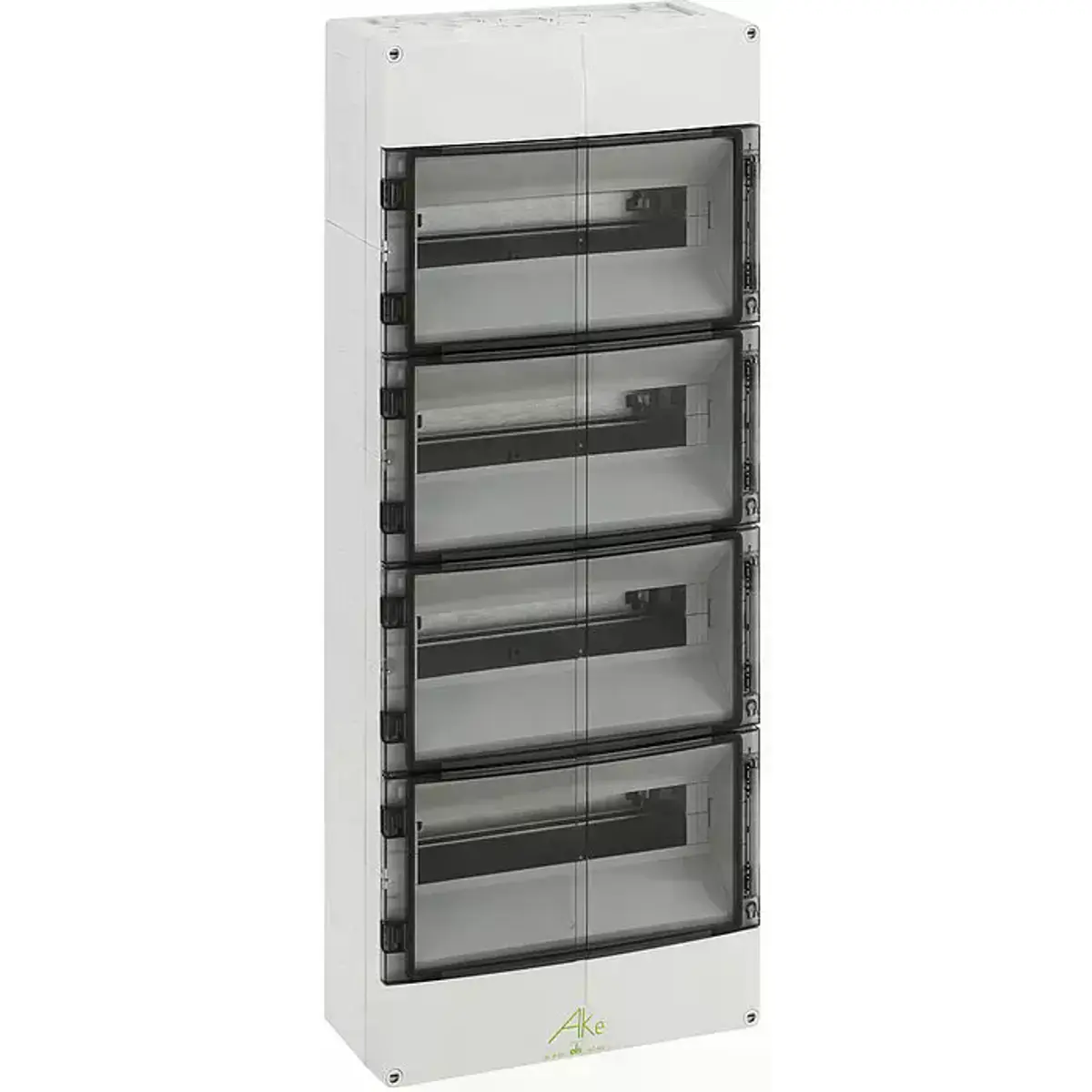 - Caixa de distribuição estanque com proteção IP55, 4 filas e 48 módulos disponíveis.