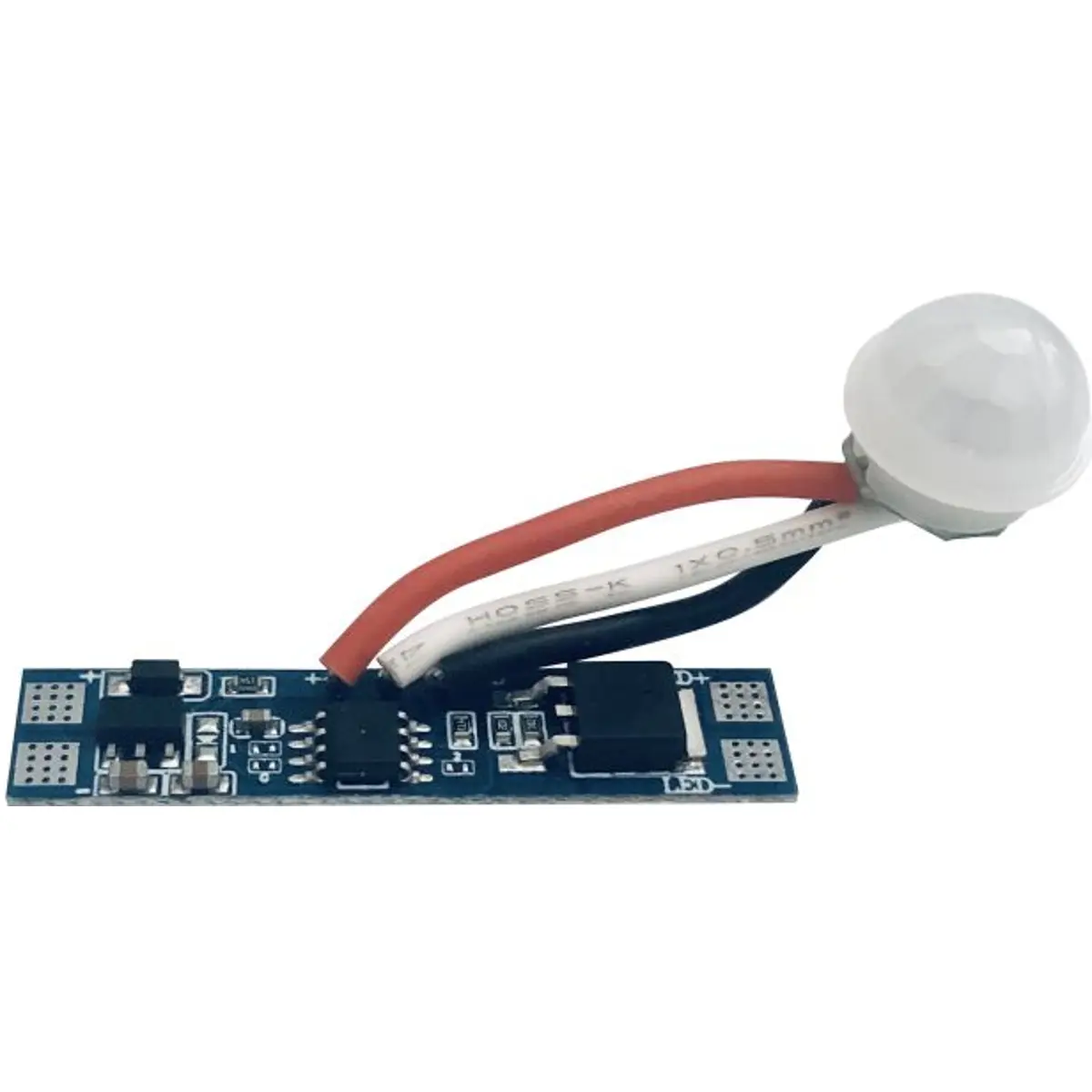 Este interruptor PIR para fitas de LED funciona com 5-24V e potência até 120W (96W em 12V e 120W em 24V). Possui diodo incorporado, classe de proteção III e montagem embutida IP20. Detecta movimento a até 3 m, acendendo as fitas de LED e desliga-se após 30 s de inatividade. Compacto (10 x 48 mm) e adequado para perfis de alumínio com largura interna superior a 10 mm, garantindo controlo automático de iluminação e economia de energia.