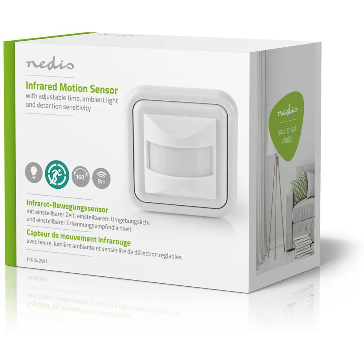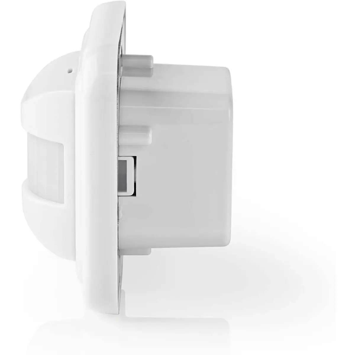 Detector de movimento para encastrar em caixa de aparelhagem, ângulo de abertura de 160º, com funções de temporizador e crepuscular. Instalação de 2 ou 3 fios. Índice de Protecção IP20, detecção até 9mts (altura de instalação de 1,5 a 1,8 mts).