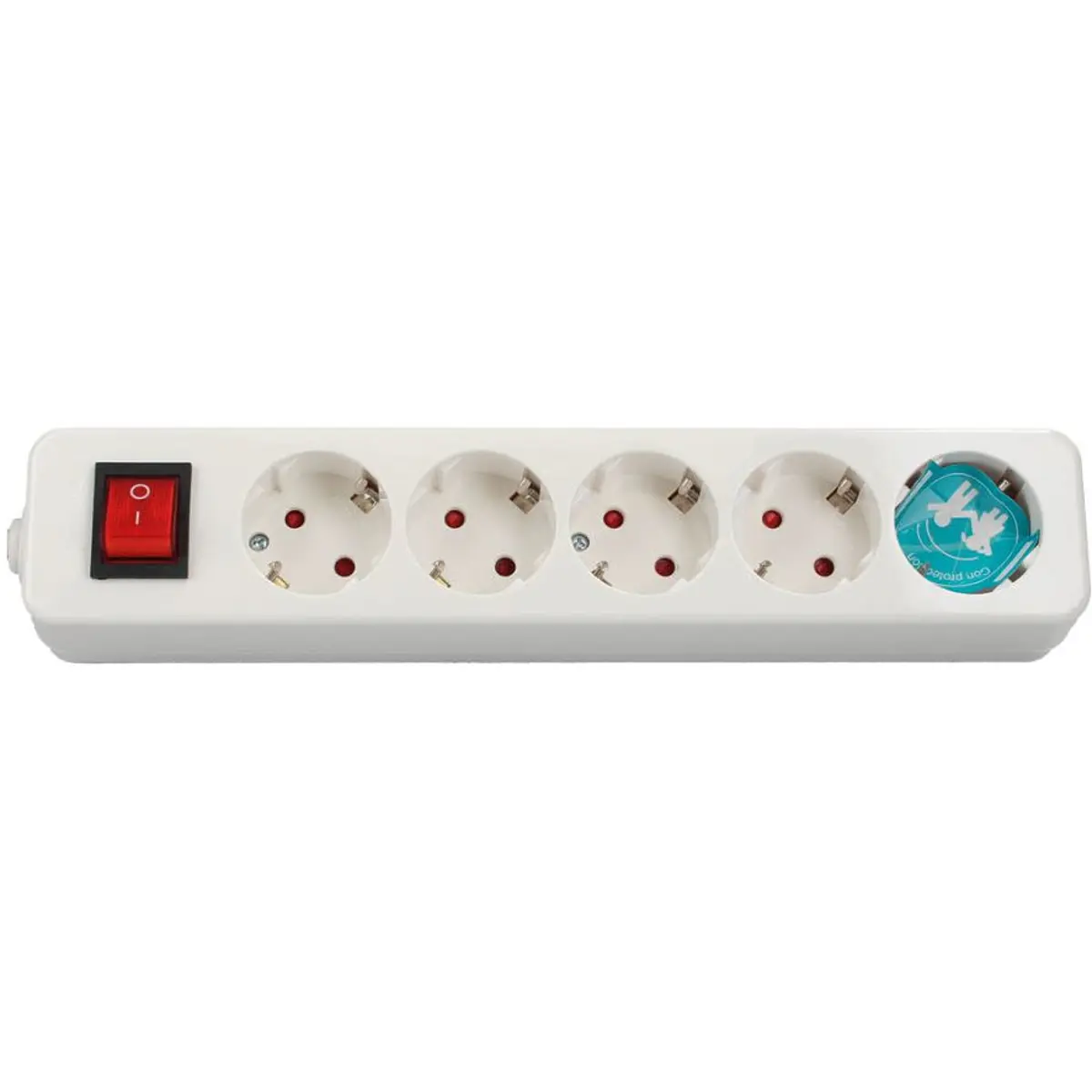 Bloco de tomadas com cinco fichas Schuko e interruptor liga/desliga. Adequado para uso em interiores, com cor branca e sem cabo elétrico, ideal para organizar ligações elétricas em casa ou no escritório. Possui potência máxima de 3680W (250V), permitindo alimentar vários dispositivos num único suporte sem necessidade de cabos adicionais. Compacto e simples de instalar, facilita a gestão de tomadas em móveis, escritórios ou áreas de trabalho, mantendo a segurança ao distribuir a energia de forma prática.