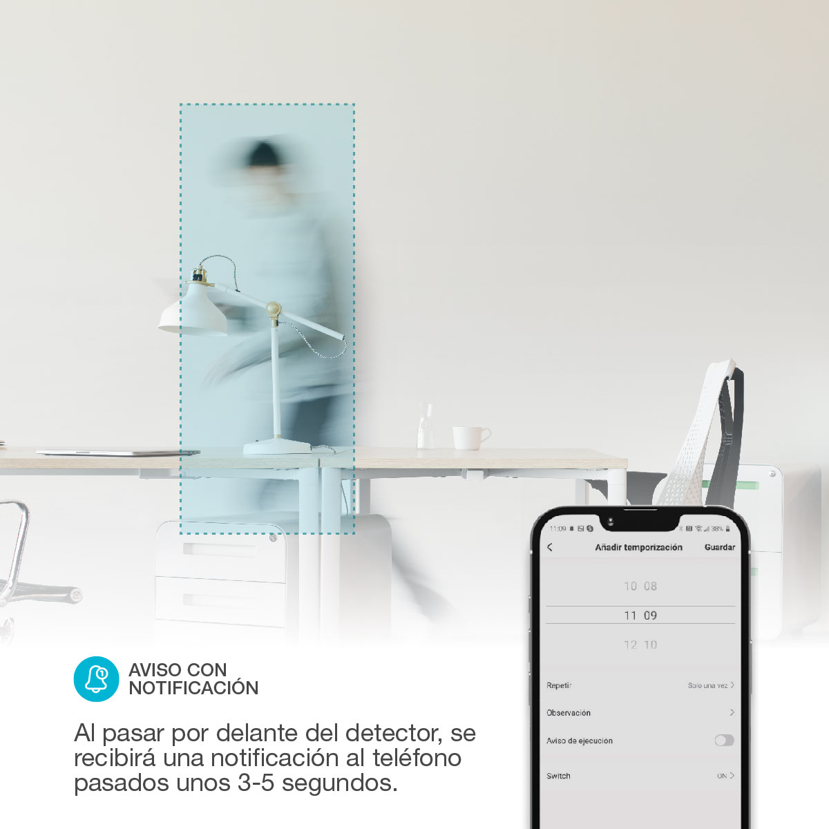O detetor de superfície com sensor de movimento via wifi é um dispositivo inteligente projetado para manter a casa protegida 24 horas por dia, 7 dias por semana. Compatível com smartphones e dispositivos como Alexa ou Google Home, este detetor é fácil de configurar e instalar, seja utilizando adesivos ou parafusos.