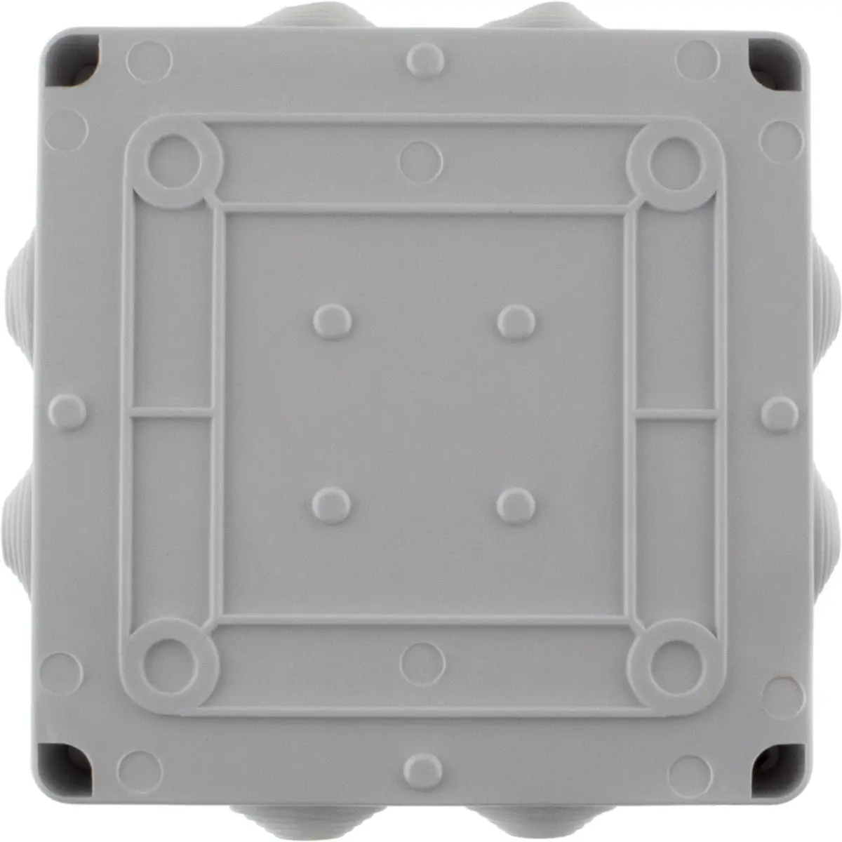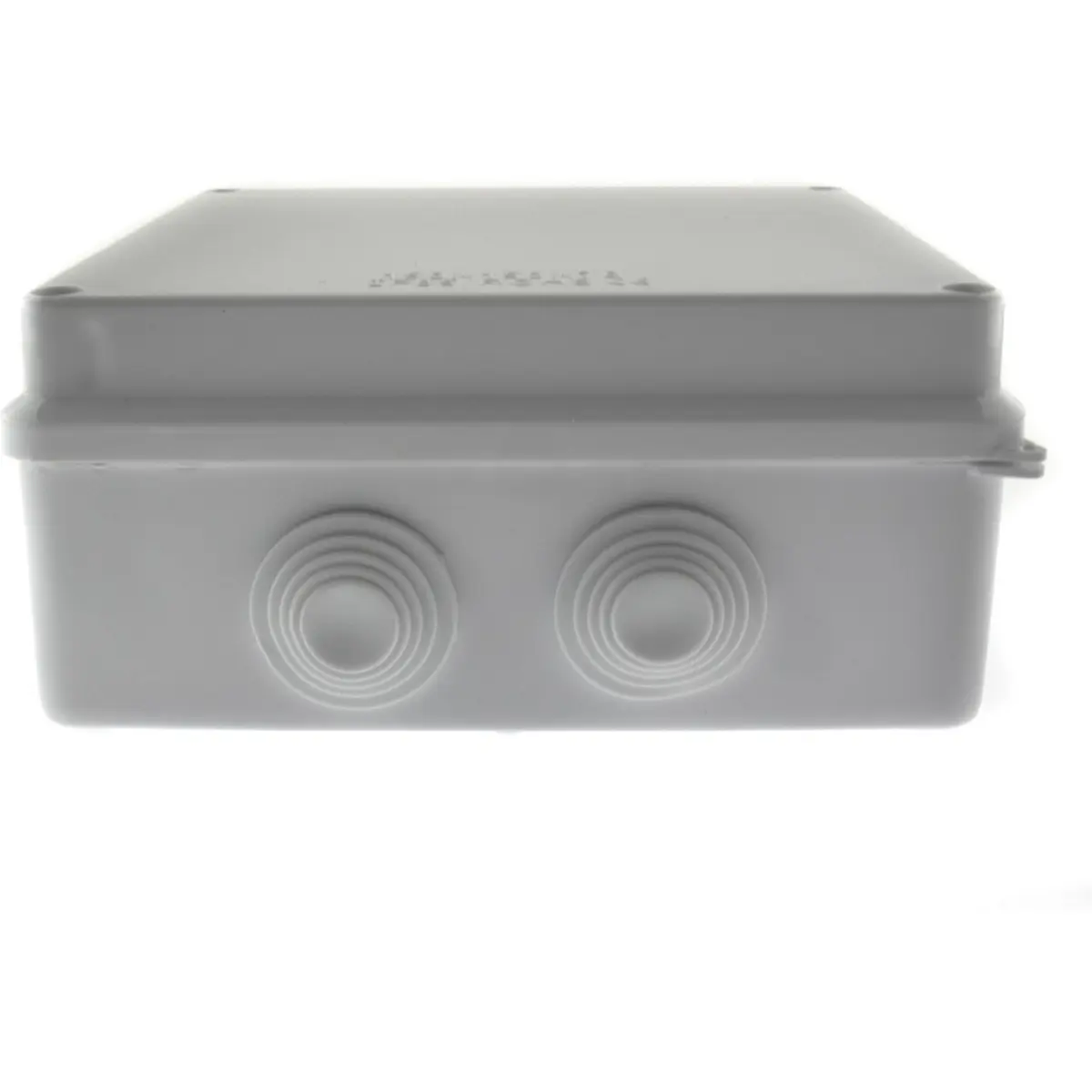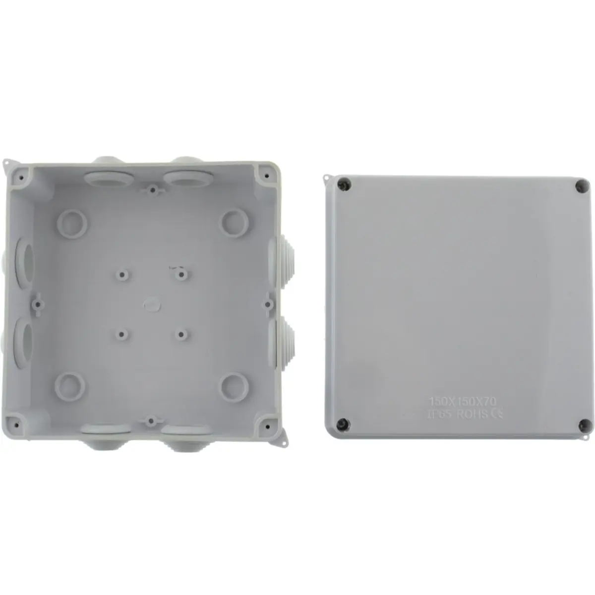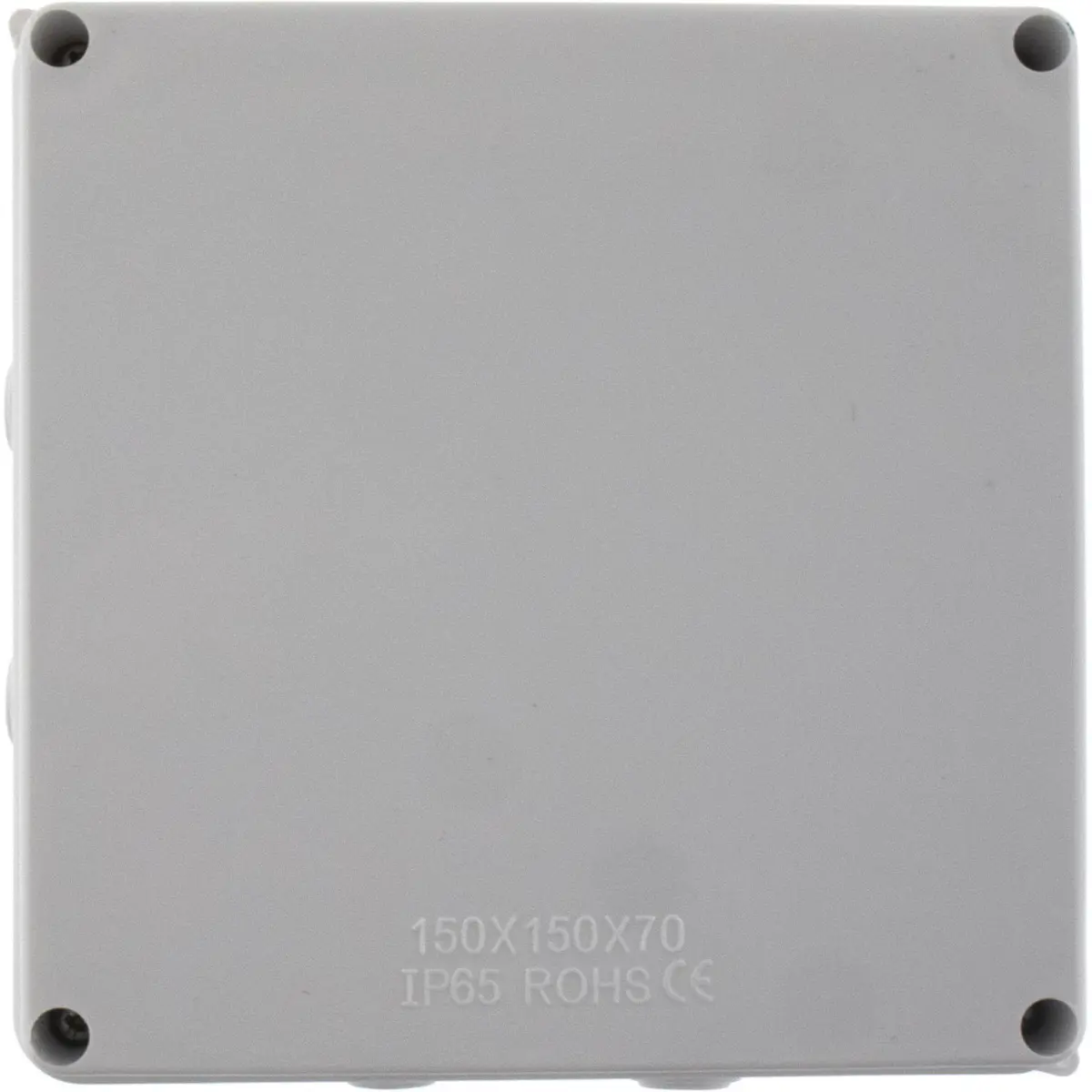 Esta caixa de derivação estanque para exteriores é indicada para instalações elétricas externas, oferecendo proteção IP65. O corpo e a tampa, em PP cinza, utilizam vedante em EPDM e 4 parafusos em poliamida para resistência e durabilidade. Possui isolamento de 600V e Classe II, com invólucro que suporta -5º a +60ºC. Pode ser montada superficialmente sobre superfícies de montagem, ou em muros sólidos não combustíveis, assegurando estanqueidade e proteção contra condições atmosféricas adversas em aplicações externas.