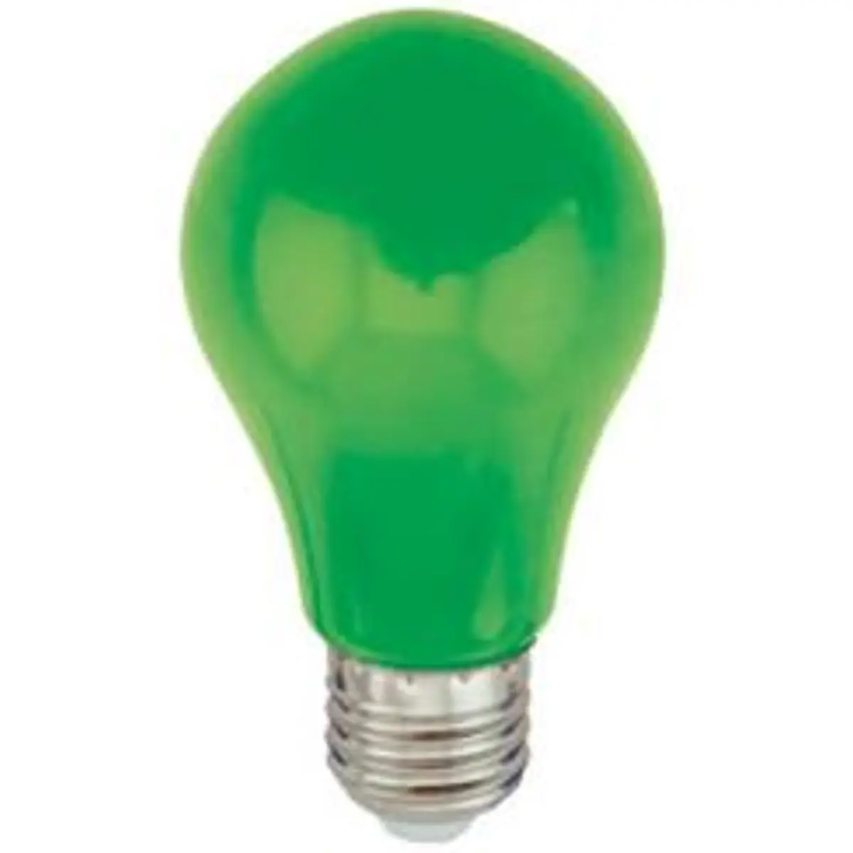 Esta lâmpada LED funciona com uma tensão de 220-240 V, potência de 1 W, base E27 e abertura de 300º para iluminação ampla. Disponível na cor verde, oferece ligação instantânea e luz plena de 100% desde o ligar. Com CRI ≥80, IP20, vida útil de 25.000 horas e temperatura de operação de -15°C a +40°C, é adequada para interiores. Compatível com 50 Hz, dimensões Ø60 x 105 mm, SDCM <6.