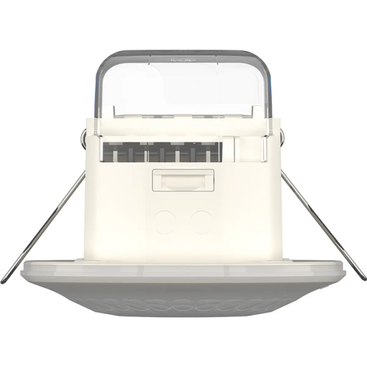 - Detector de movimento infravermelho passivo, instalação no teto conforme fornecido ou montagem embutida por meio de molas removíveis/tampa de proteção e estrutura de montagem incluída