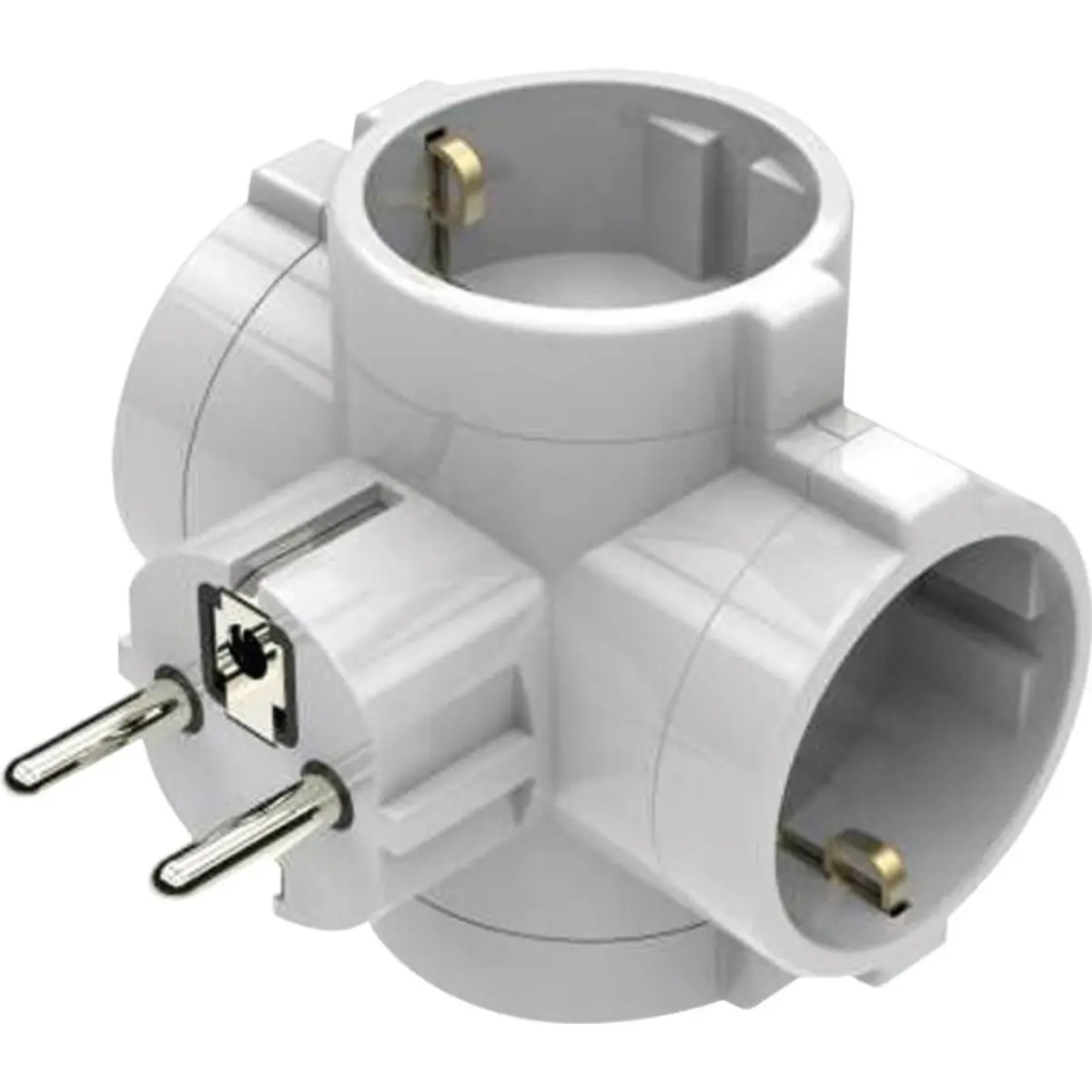 A ficha quádrupla Schuko de 250 V e 3680 W oferece quatro tomadas com construção em policarbonato resistente, ideal para uso doméstico e em escritórios. Suporta 250 V a 50 Hz com corrente até 16 A, fornecendo energia estável para múltiplos dispositivos. Não possui interruptor, facilitando a gestão de ligações, e incorpora proteção para crianças para maior segurança. Uma solução prática para ligar vários dispositivos numa única estação, mantendo a organização e a proteção contra choques.