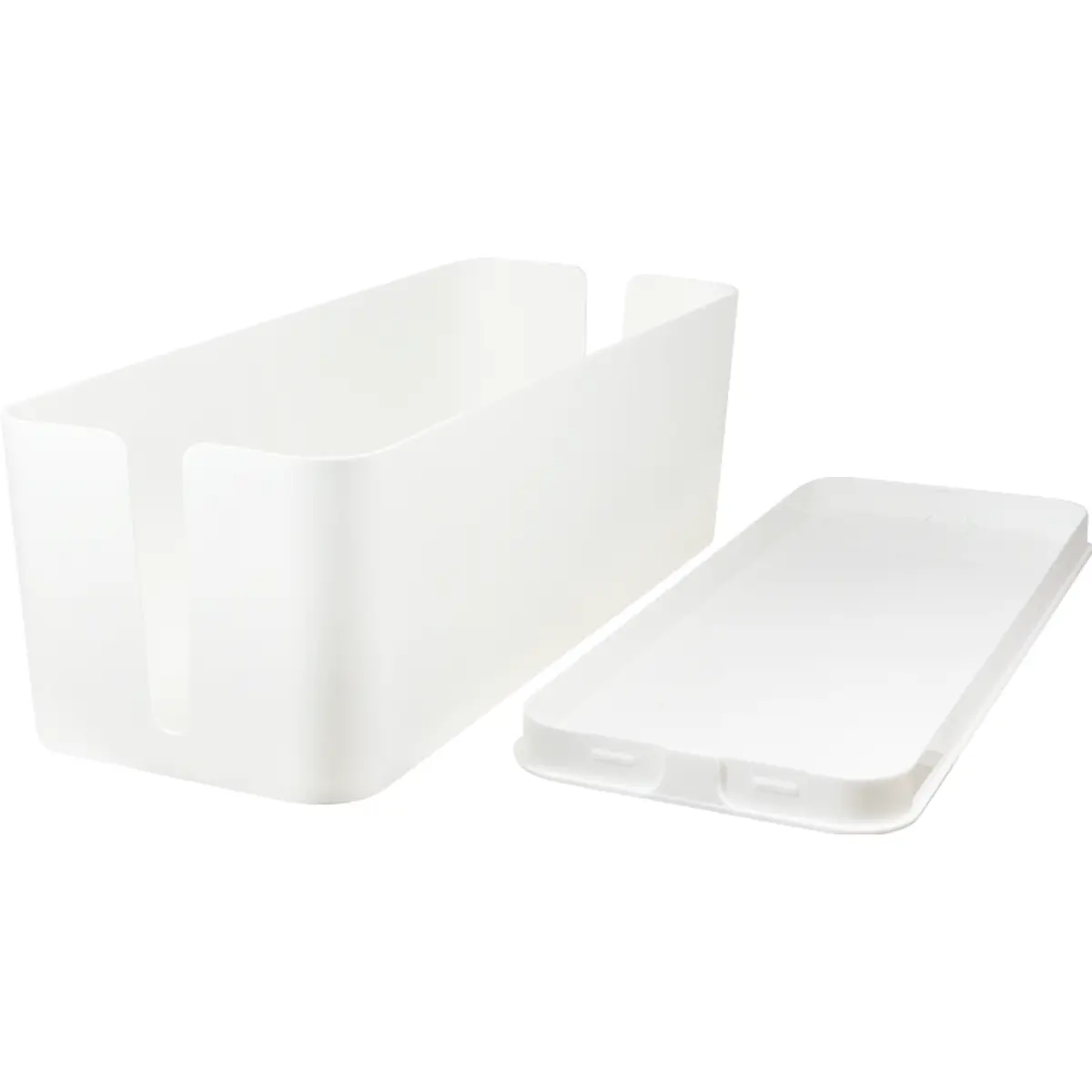 Organizador altamente funcional projetado para armazenar fichas e cabos de forma discreta. Ideal para ocultar cabos de extensão e fios, proporcionando segurança contra o acesso de crianças. Além de suas considerações de segurança, este organizador oferece uma excelente solução para a arrumação dos cabos que costumam ficar dispersos sob a secretária ou atrás da mesa. A caixa apresenta uma tampa robusta e duas ranhuras laterais que facilitam a passagem dos cabos de maneira conveniente.