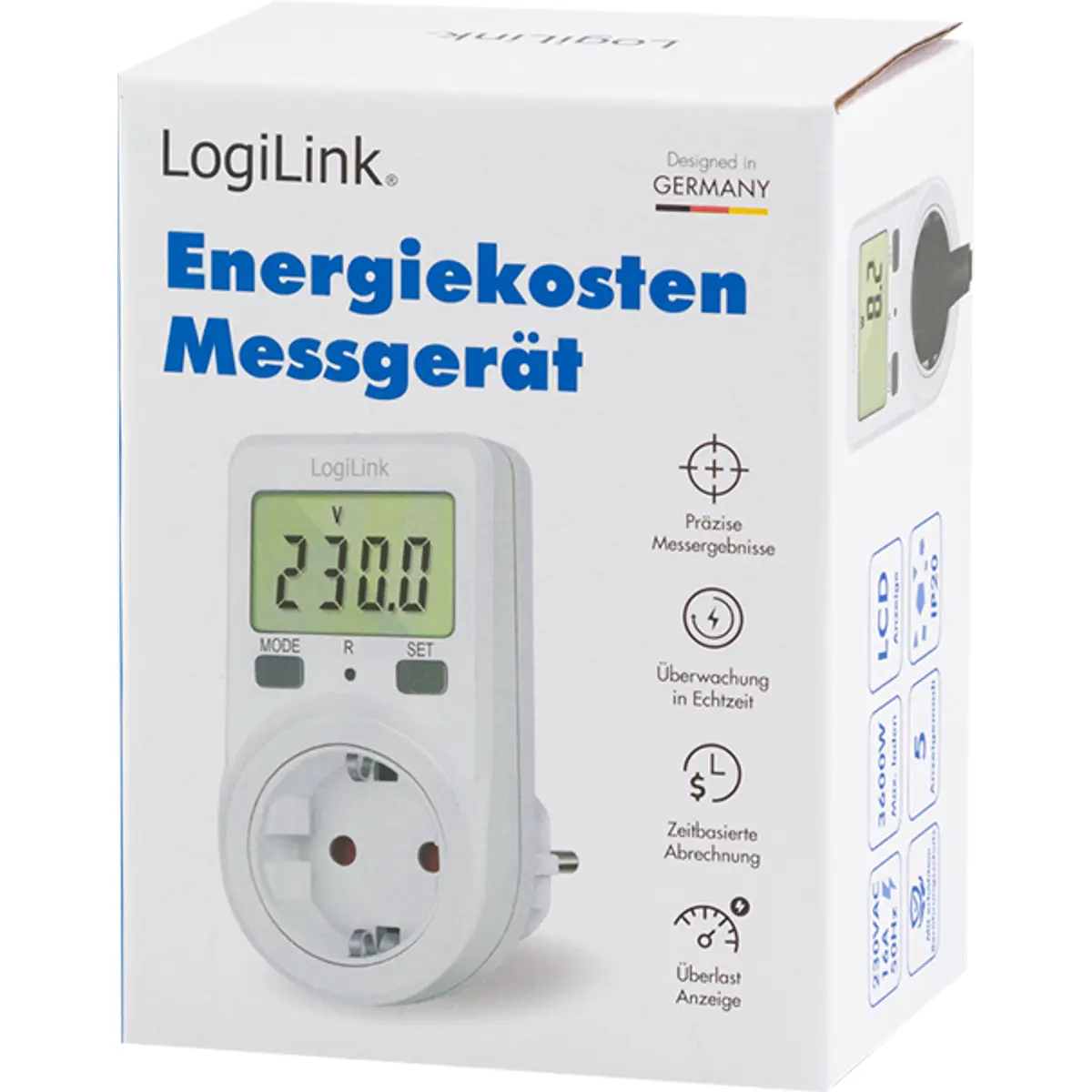 O Medidor de Custo de Energia LogiLink permite identificar equipamentos elétricos ineficientes na sua casa, mostrando o consumo de energia e a potência necessária. Ao inserir a sua tarifa de energia pessoal, o dispositivo calcula automaticamente os custos associados. O display de fácil leitura exibe a potência, a voltagem da rede, o consumo de energia, os custos e o aviso de sobrecarga, tornando-o ideal para monitorar o uso de uma ampla gama de dispositivos, como computadores, consolas de jogos, impressoras, televisores, set-top boxes, routers, entre outros.