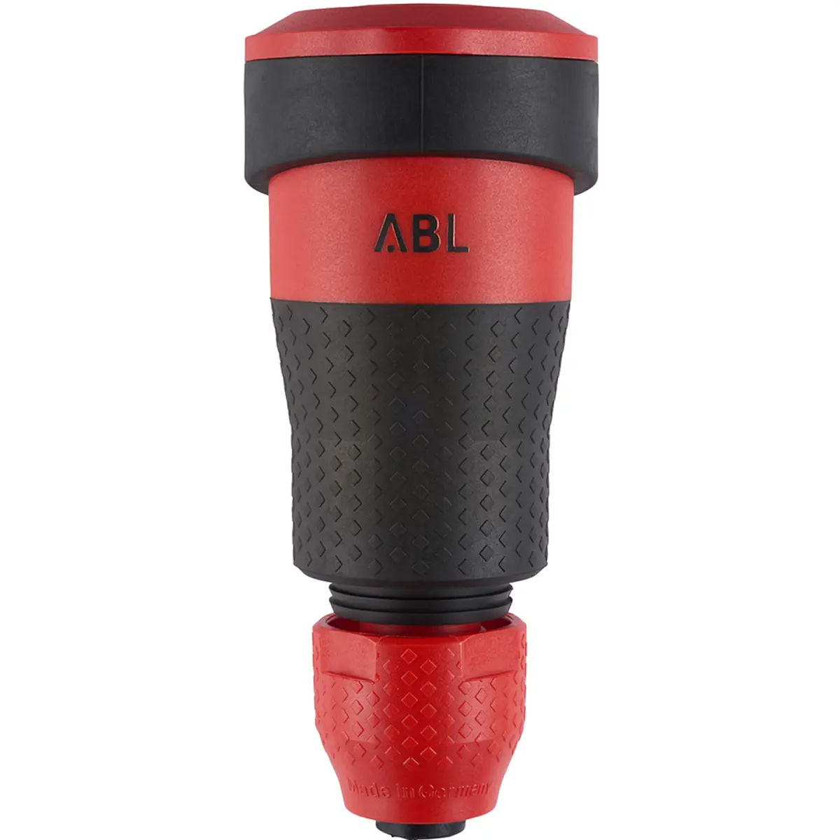 - Conector da linha Professional de acordo com o padrão SCHUKO, com tampa articulada de fecho automático, mecanismo de libertação rápida ABL e indicador de tensão