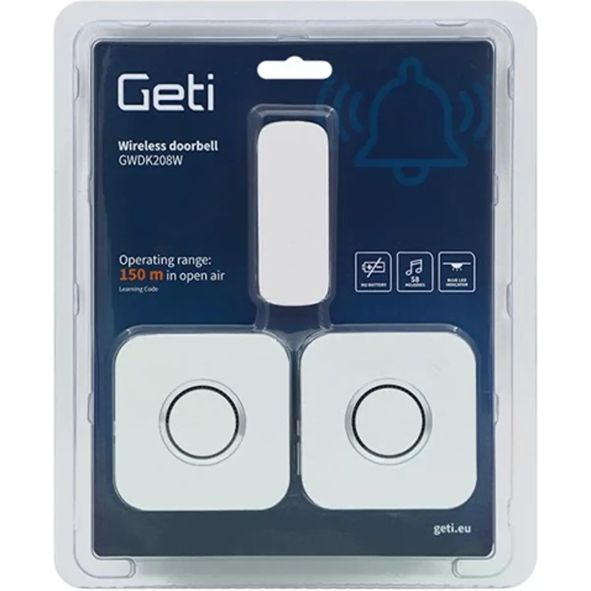 Geti GWDK208W - Conjunto de 2 campainhas 230Vac sem fio com botão auto-alimentado (cinético) - IP20 - branco - alcance 150m