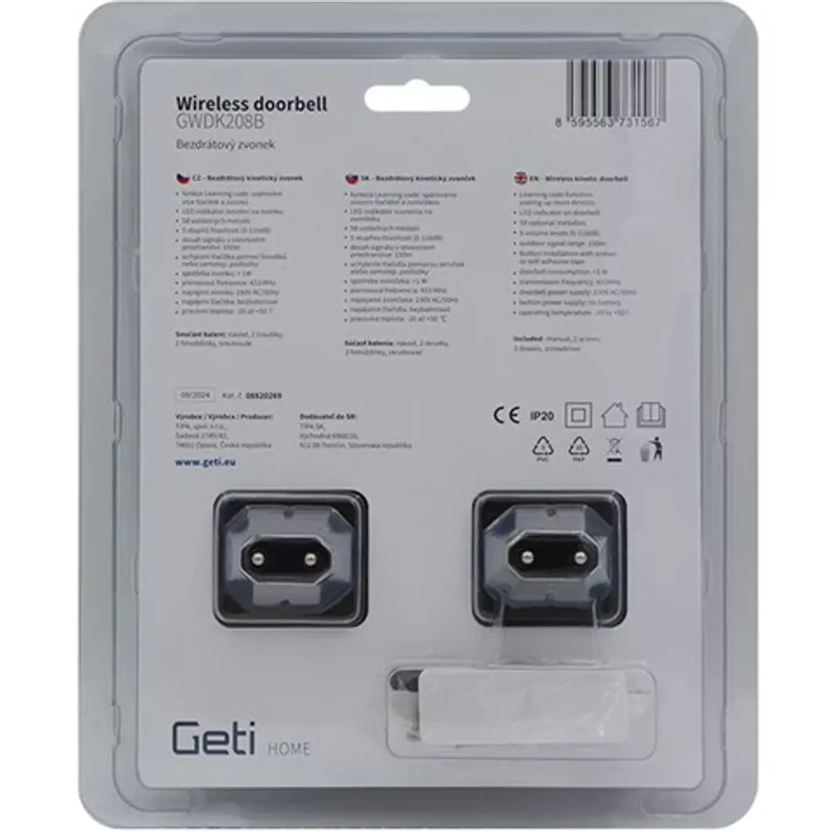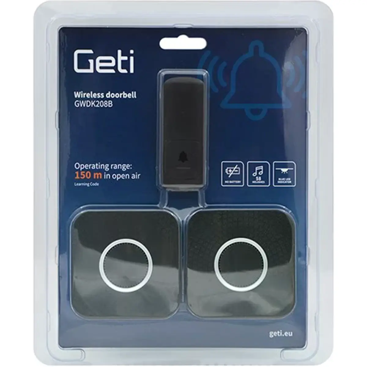 O conjunto de 2 campainhas e 1 botão GETI GWDK208B é adequado não apenas para casas ou apartamentos, mas também para escritórios, fábricas ou salas de receção. A principal vantagem é que o botão não necessita de pilhas ou alimentação externa, uma vez que a energia necessária para o seu funcionamento é gerada pelo movimento de pressionar o botão. Isto elimina a necessidade de substituição regular de pilhas, tornando-o uma solução ecológica e económica. Outra característica destacada desta campainha é o seu design sem fios com um alcance de até 150 metros em espaço aberto. A instalação da campainha é muito fácil, com o emparelhamento entre o transmissor e a campainha a ocorrer automaticamente. A função de LEARNING CODE (código de aprendizagem) permite ainda o emparelhamento de vários botões e campainhas. A campainha apresenta um design moderno e simples, 5 níveis de volume e uma seleção de 58 toques. Uma grande vantagem é que a campainha mantém a melodia e o volume definidos mesmo após ser desconectada da alimentação elétrica.