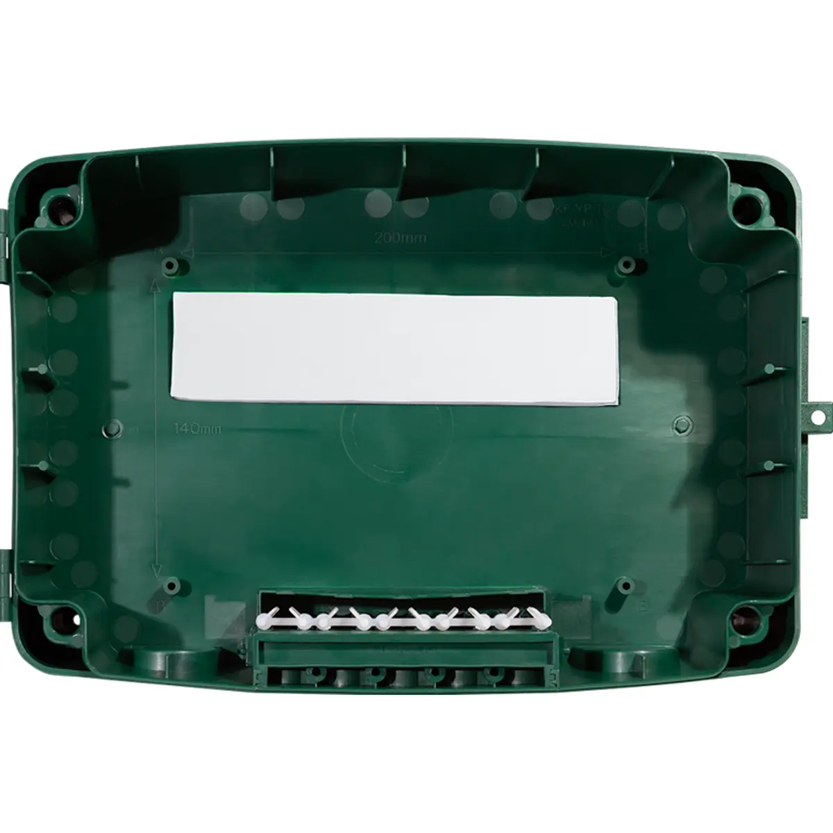 Caixa de proteção externa com classificação IP54, fabricada em plástico resistente, indicada para uso ao ar livre. Protege conexões e tomadas contra poeira e respingos de água, mantendo os componentes seguros em ambientes húmidos. O fecho simples facilita a abertura e o encerramento, garantindo acesso rápido quando necessário. Dimensões externas de 320x115x210 mm (internas 290x110x180 mm) e peso de 0,88 kg, com acabamento verde, ideal para proteger equipamentos elétricos expostos a intempéries.