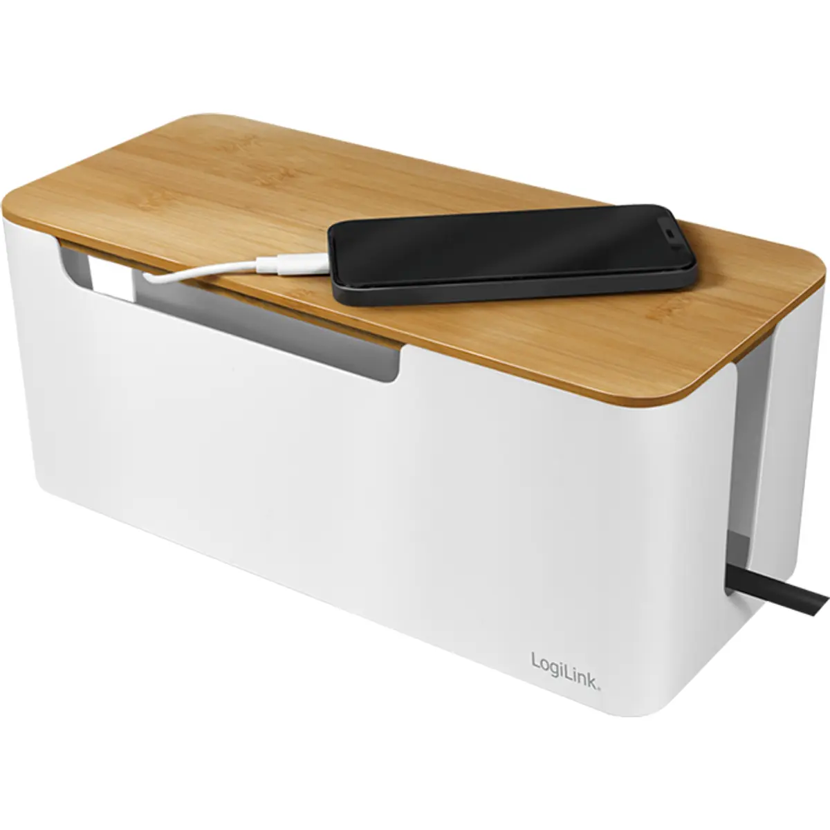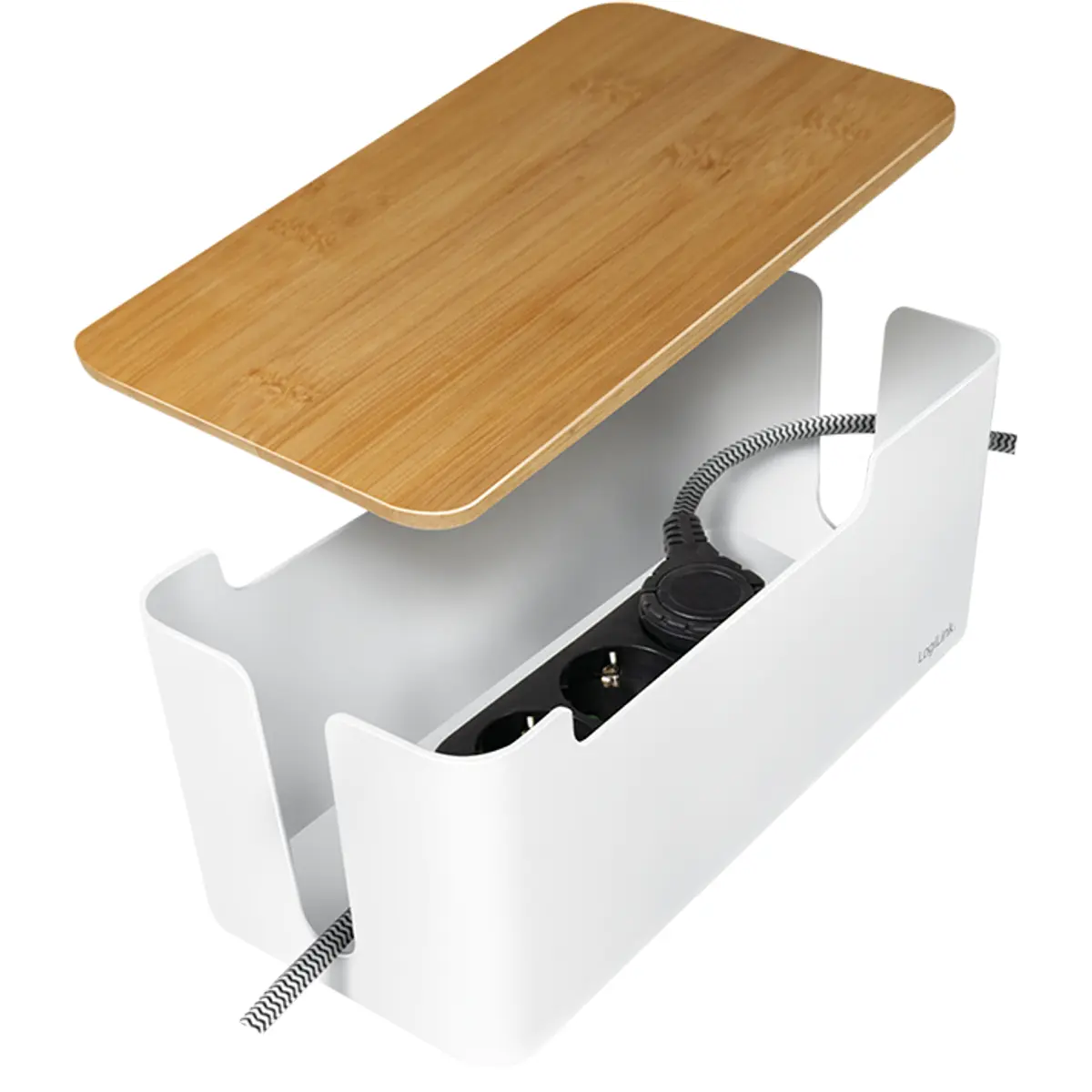 Organizador altamente funcional projetado para armazenar fichas e cabos de forma discreta. Ideal para ocultar cabos de extensão e fios, proporcionando segurança contra o acesso de crianças. Além de suas considerações de segurança, este organizador oferece uma excelente solução para a arrumação dos cabos que costumam ficar dispersos sob a secretária ou atrás da mesa. A caixa apresenta uma tampa robusta e duas ranhuras laterais que facilitam a passagem dos cabos de maneira conveniente.