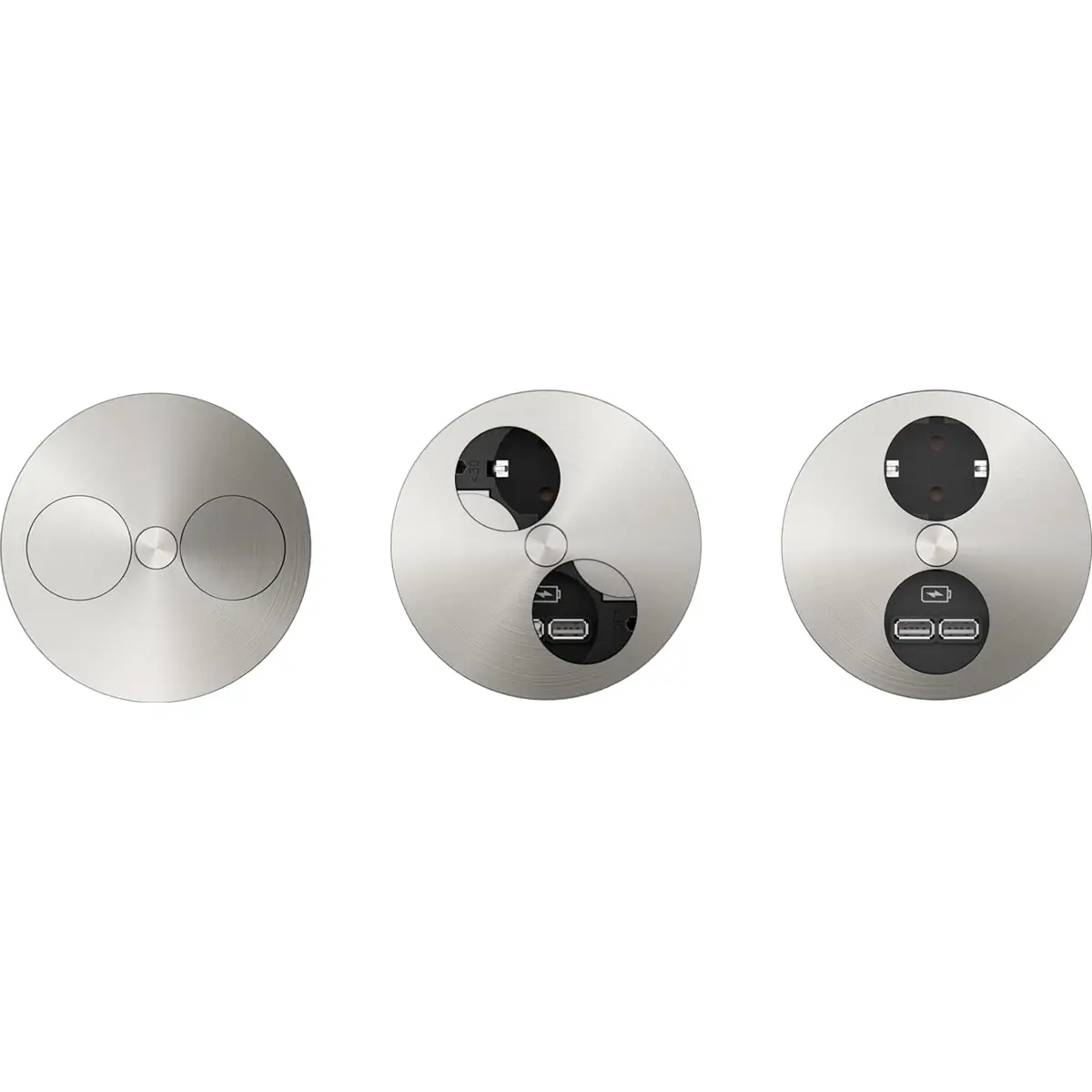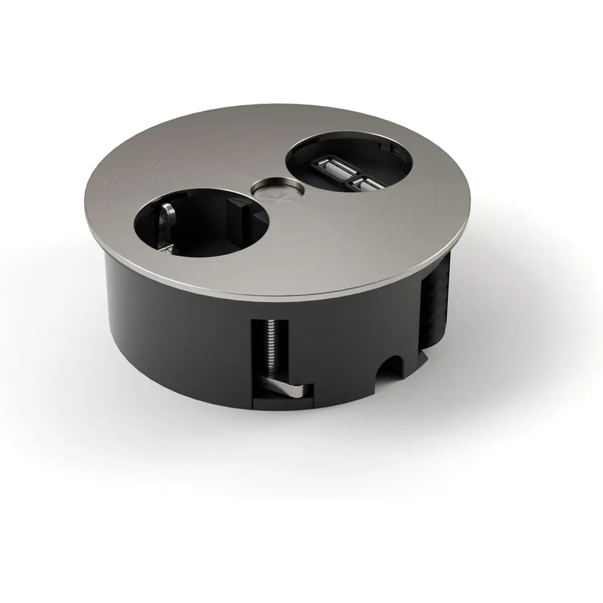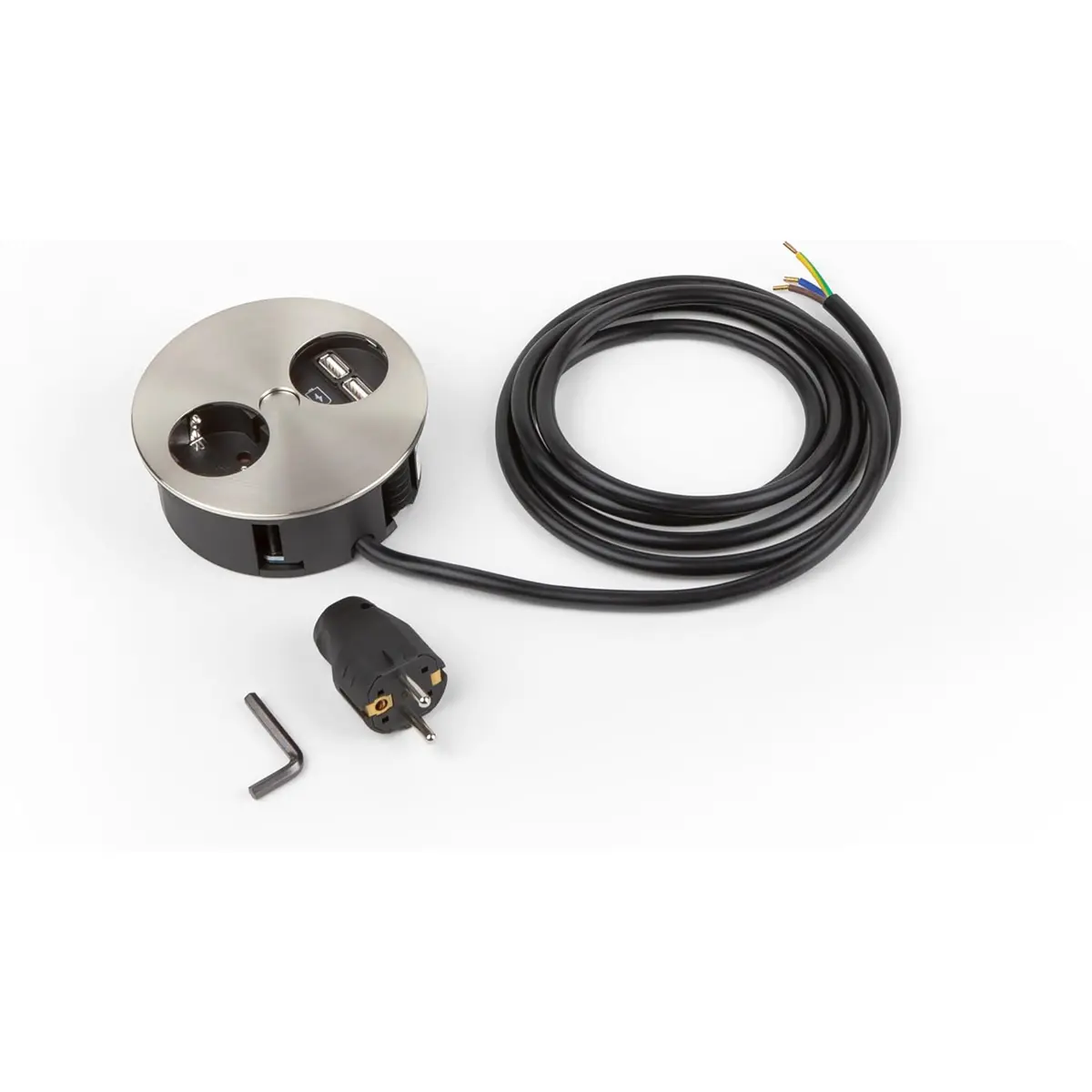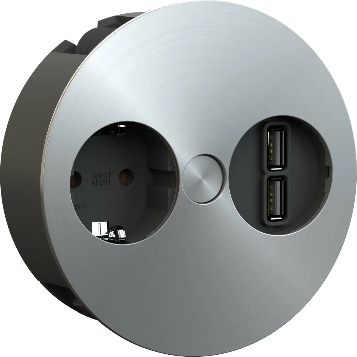 A TWIST 931.031 da Bachmann é uma tomada embutida de design compacto, concebida para ser encastrada em superfícies planas, como bancadas de cozinha, secretárias ou mesas de reuniões. O seu formato redondo e tampa giratória em aço inoxidável conferem-lhe um aspeto moderno e discreto, ideal para ambientes elegantes e funcionais.