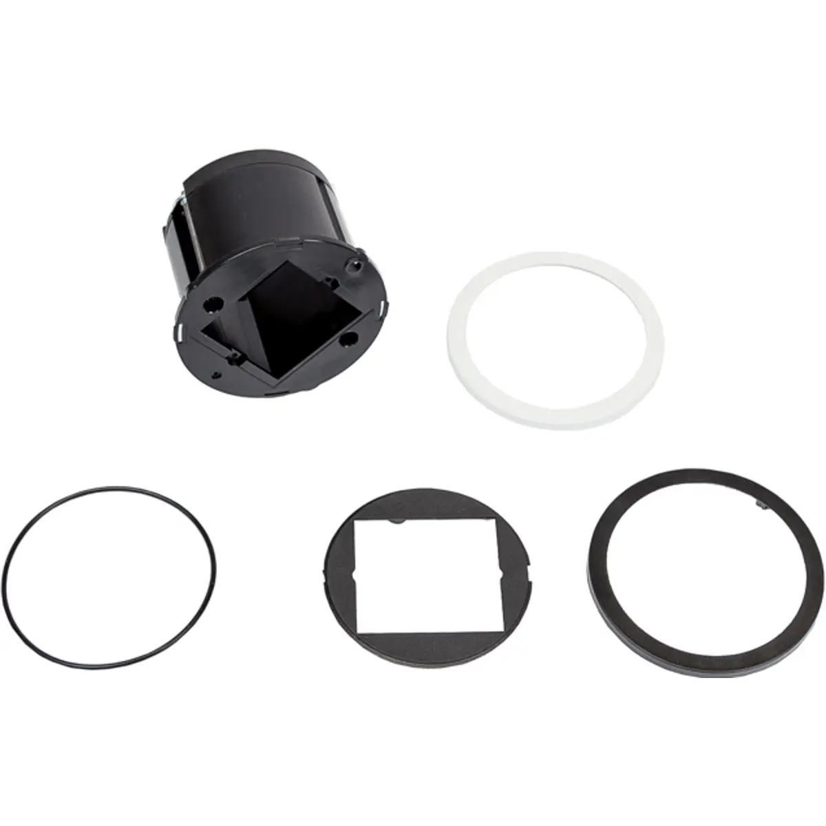 Inclui dois anéis decorativos (preto e branco) mas também estão disponíveis em várias outras cores (opcionais, não incluídos) e podem ser trocados mesmo após a instalação. Está também disponível, como acessório opcional, uma tampa articulada que protege contra poeira e sujidade, podendo ser facilmente adicionada mais tarde.
