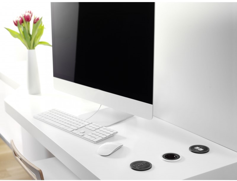 Uma solução elegante e versátil, ideal para aplicações em cozinhas, escritórios, espaços públicos ou ambientes domésticos. Com um design redondo, plano e minimalista, permite integrar de forma discreta diferentes tipos de módulos, adaptando-se facilmente ao estilo e às exigências de cada espaço.
