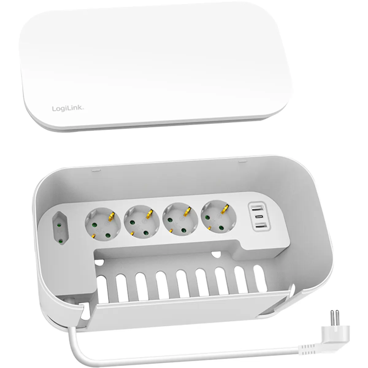 Logilink LPS281U - Caixa organizadora de cabos c/ bloco de 5 tomadas + 3x USB - cabo 1.5m - branco - 285x145x130mm