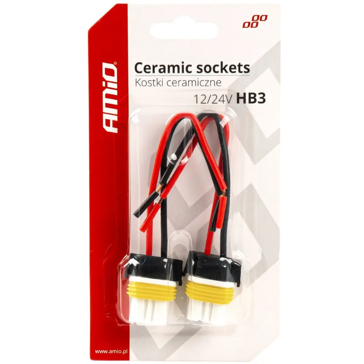 O conector é fabricado em material cerâmico resistente a altas temperaturas e possui uma capa isolante robusta. Destina-se a lâmpadas e faróis de veículos equipados com lâmpadas halógenas do tipo HB3 9005 (compatível com sistemas de 12V e 24V), permitindo a instalação da fiação ou a substituição de conectores usados.