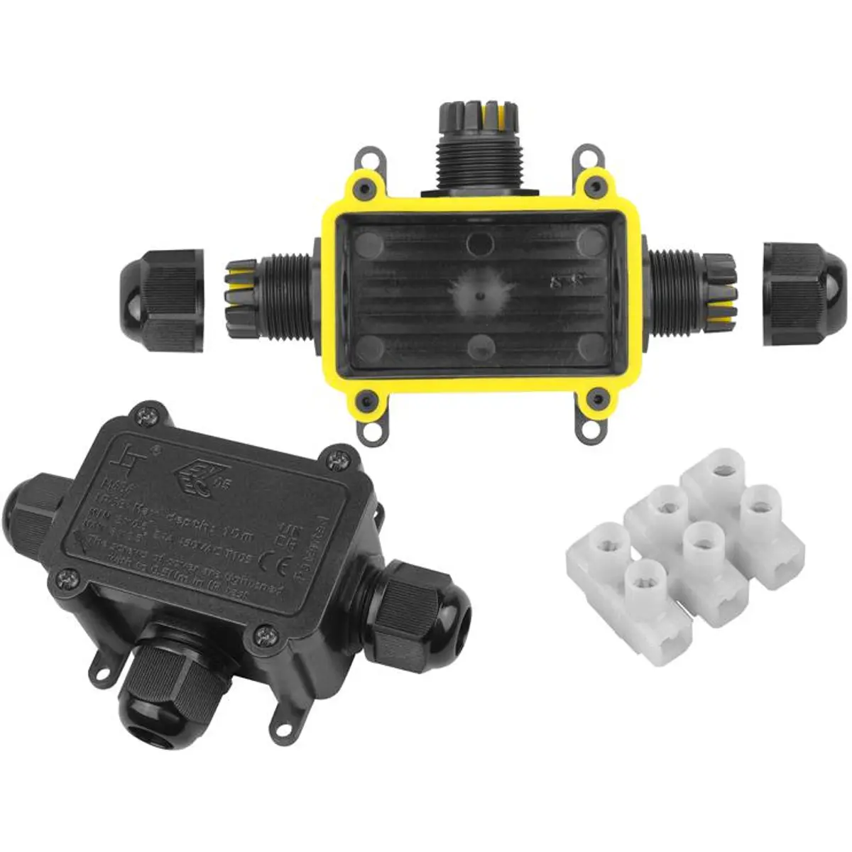 Caixa de derivação estanque (3 saídas) c/ bucins 72x42x40mm IP68 - preto